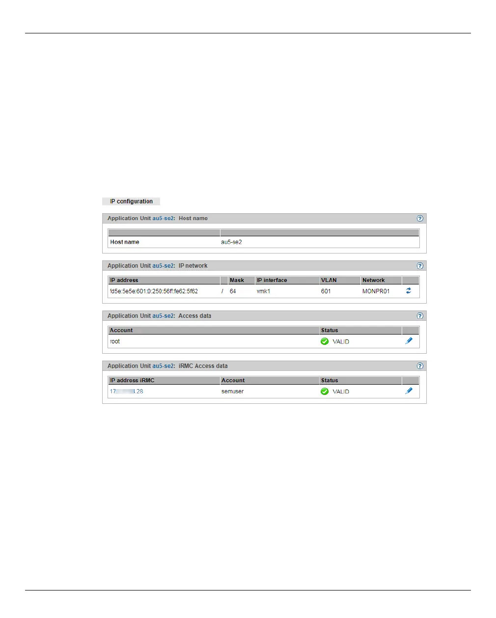 with the VMware vSphere operating system), and iRMC Access data.
