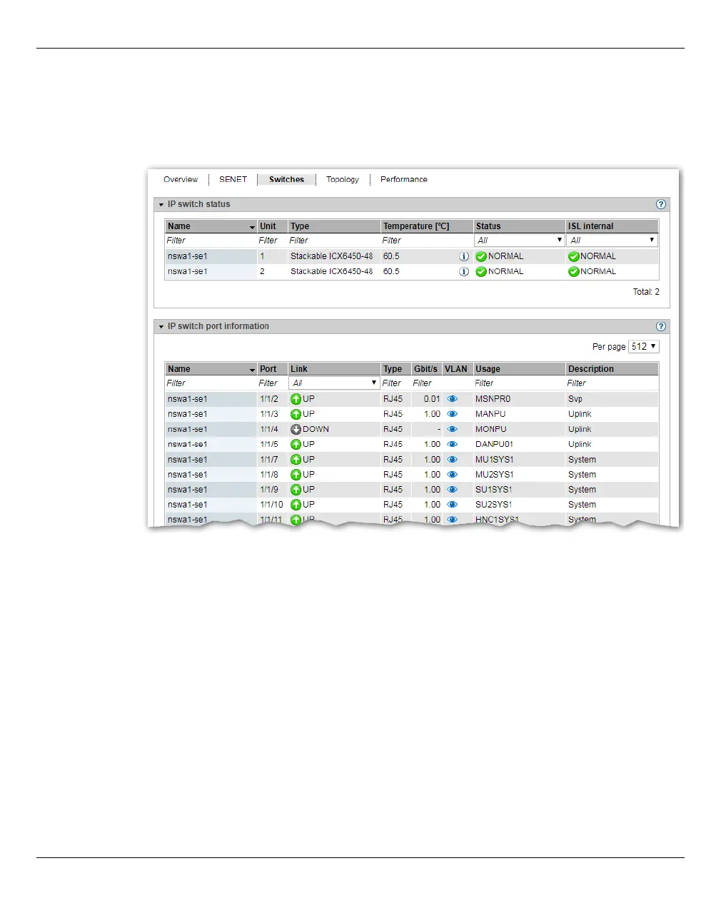Ê In the IP switch port information group, click the Display/Details icon (eye) in the entry for