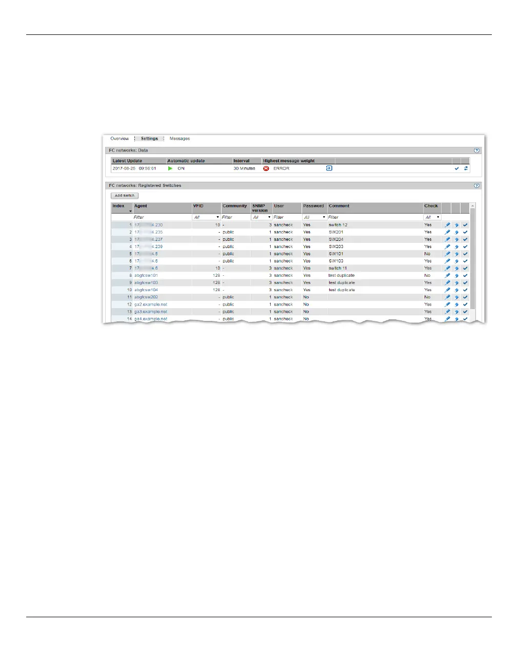 Ê Select Hardware → FC networks, Settings tab. The Settings tab with all information on FC