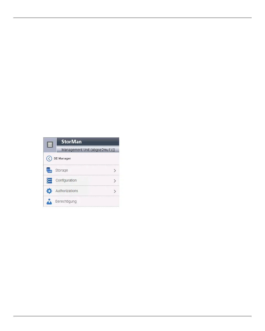 Ê In a configuration with a single MU: Select: Hardware → Storage, Storage Manager tab.