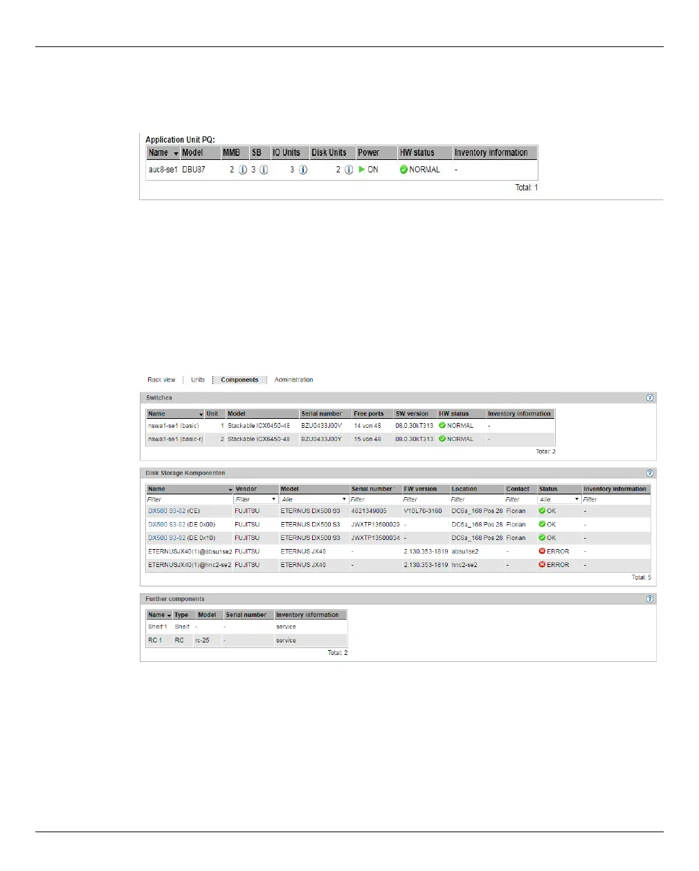 In the components view all integrated add-on components, e.g. switches and storage