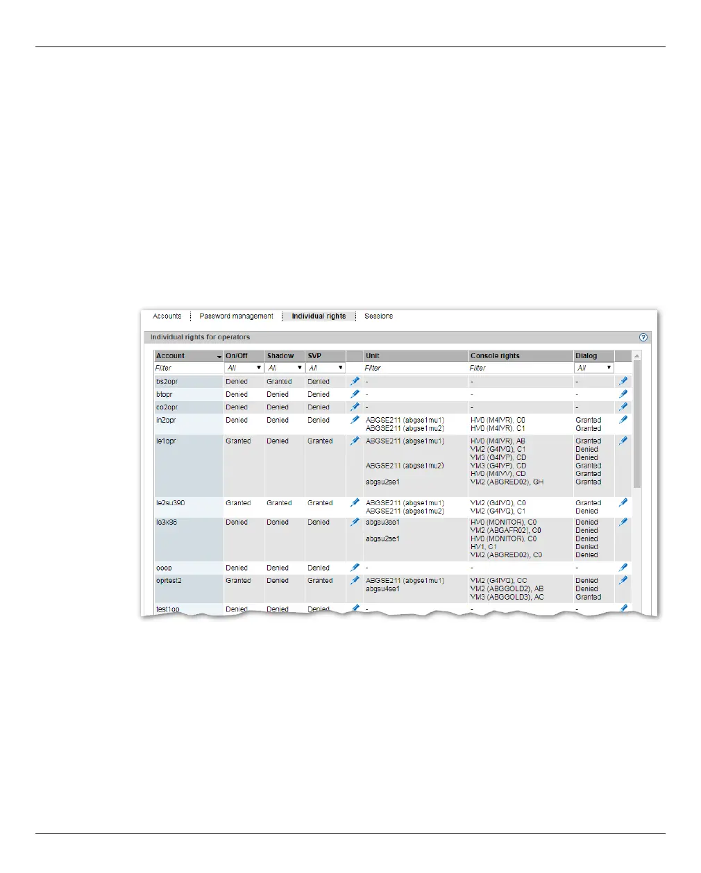 The Individual rights tab lists all operator accounts together with their individual rights.