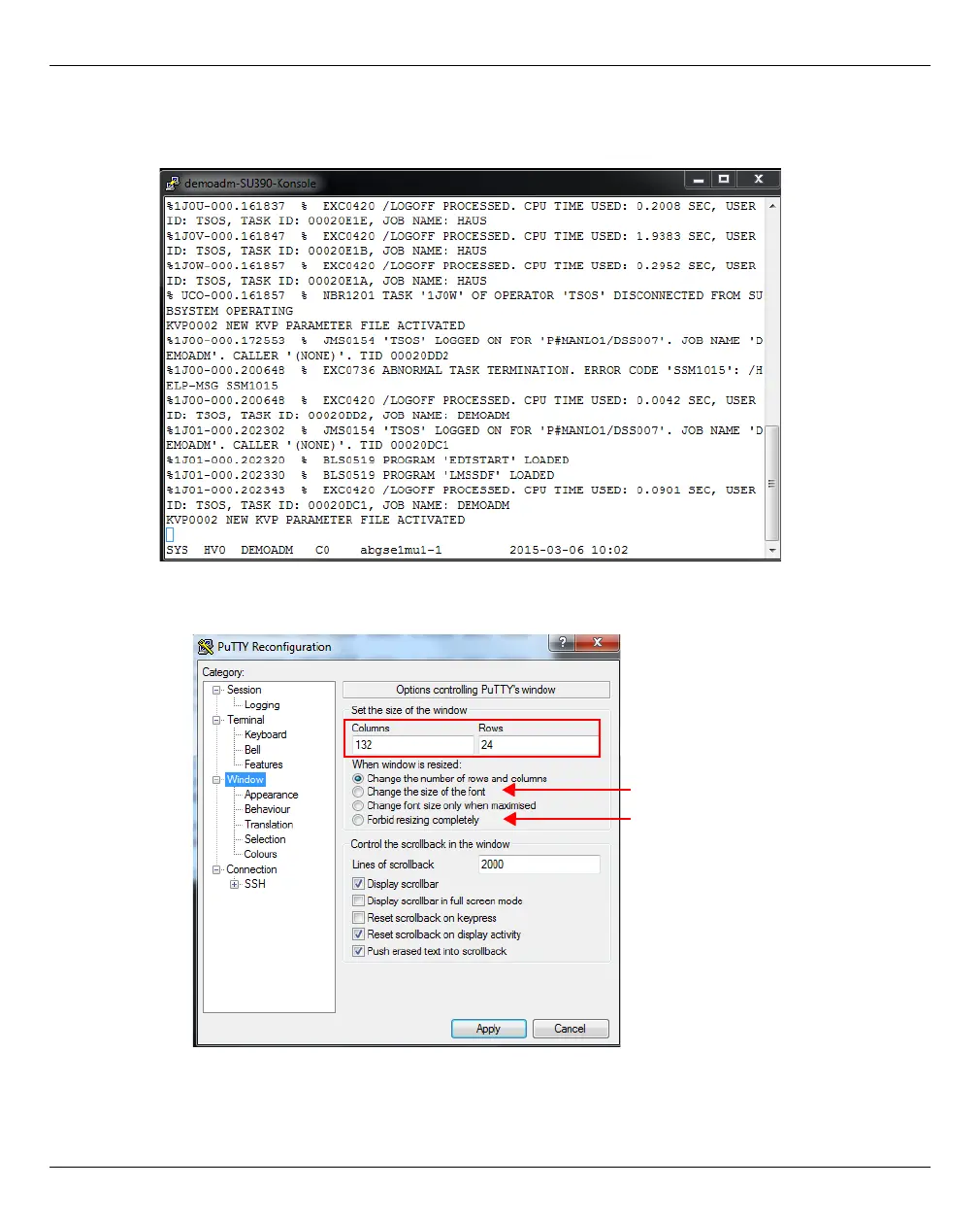 Ê Choose an alternative setting for the window size (the default size is 80 x 24). To avoid
