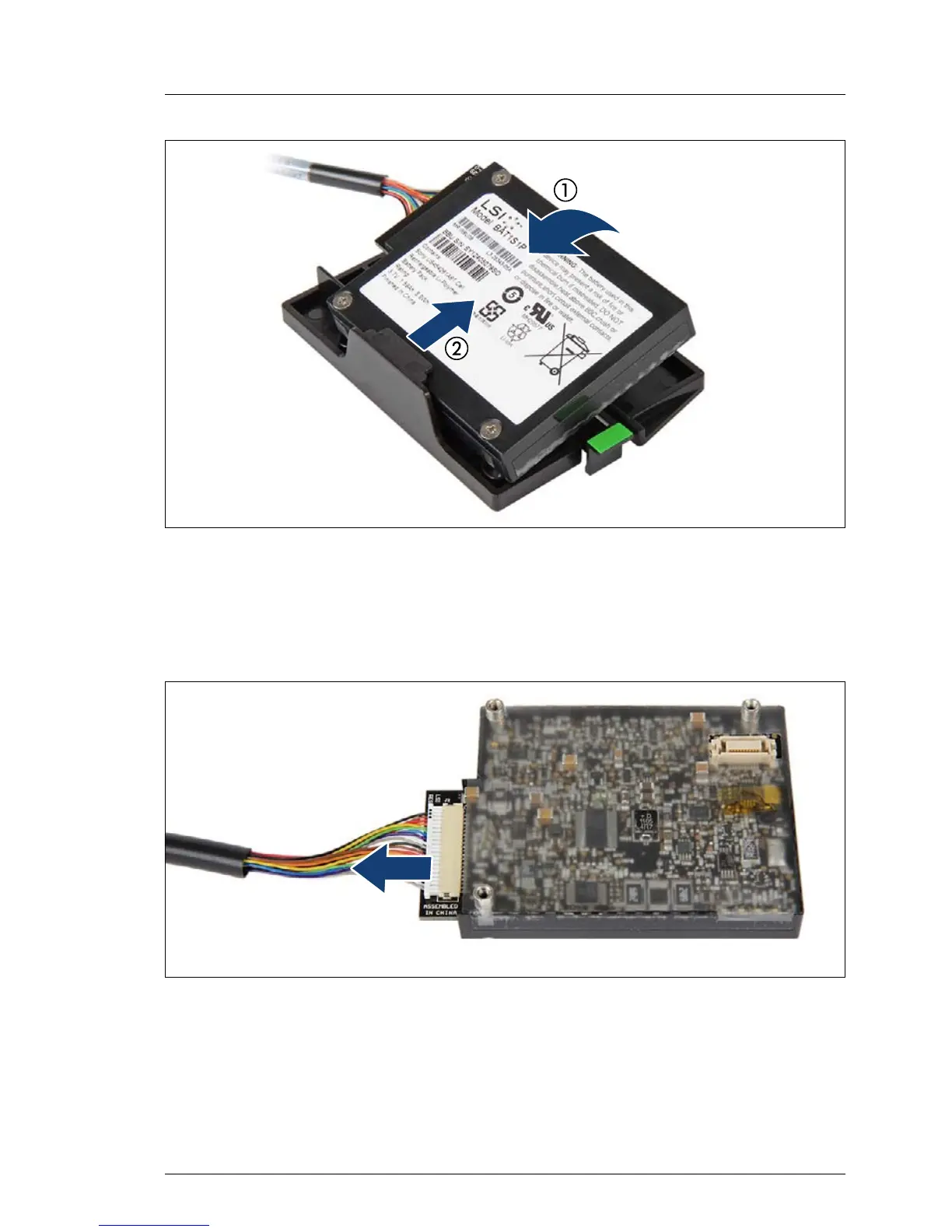 Ê Fold up the BBU and at a slight angle remove it from the BBU holder (2).