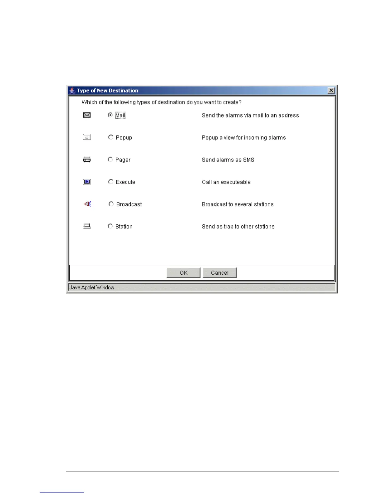 By clicking the Add button you can define a new destination. The following