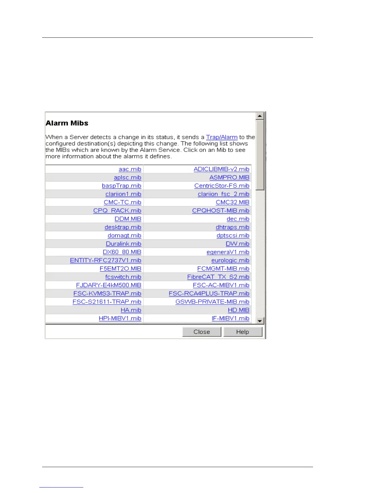 The Alarm Mibs window is displayed: