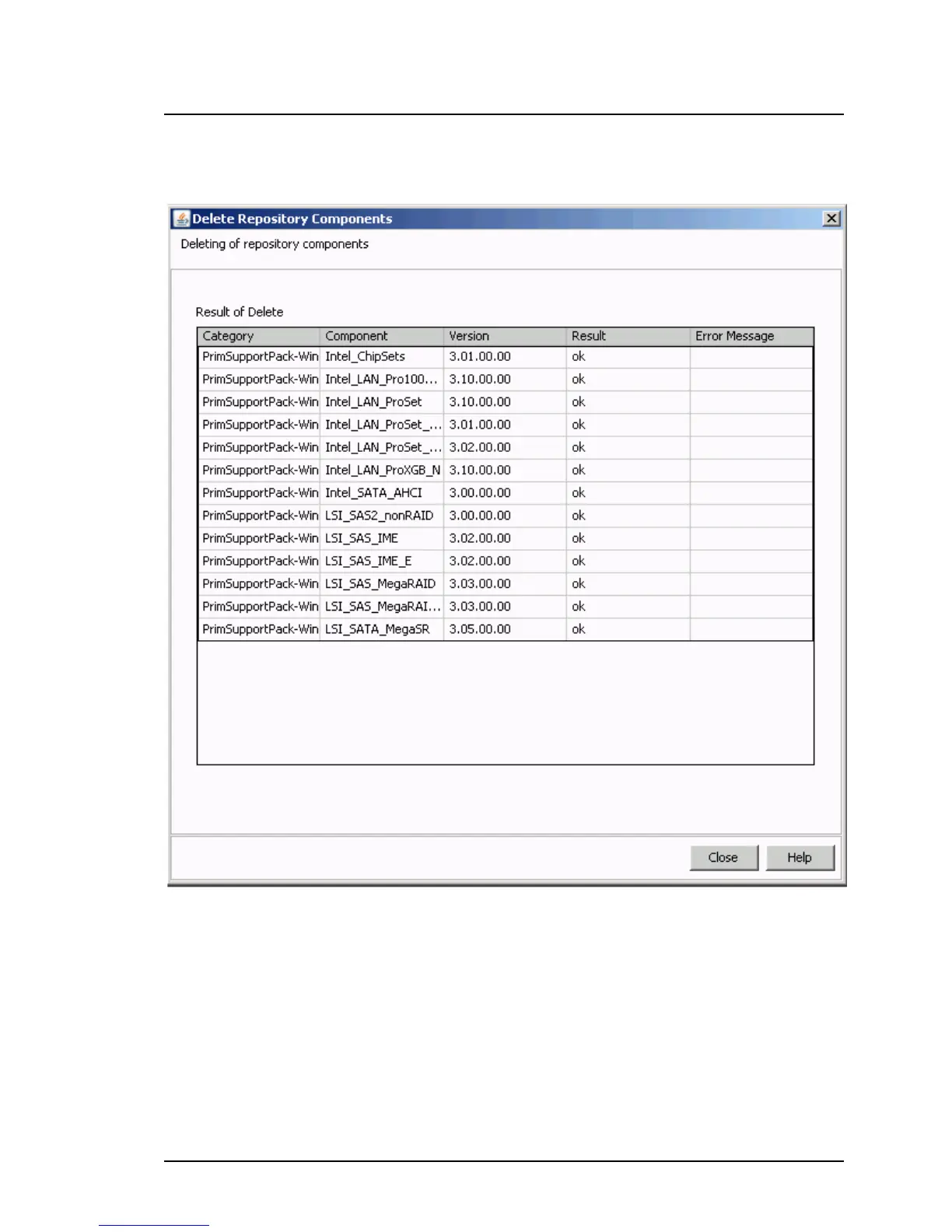 Fujitsu ServerView Operations Manager V6.12 - Delete Repository Components - Results Dialog Box