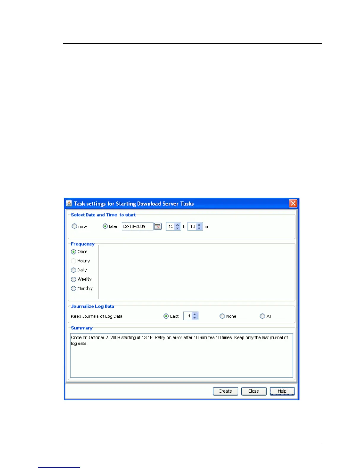 In this dialog box, you specify when and how often a download task will be