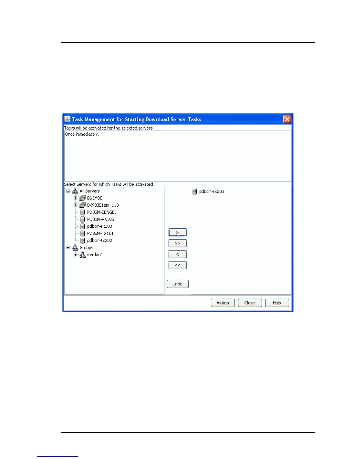 In this dialog box, you assign one or more servers to a download task.