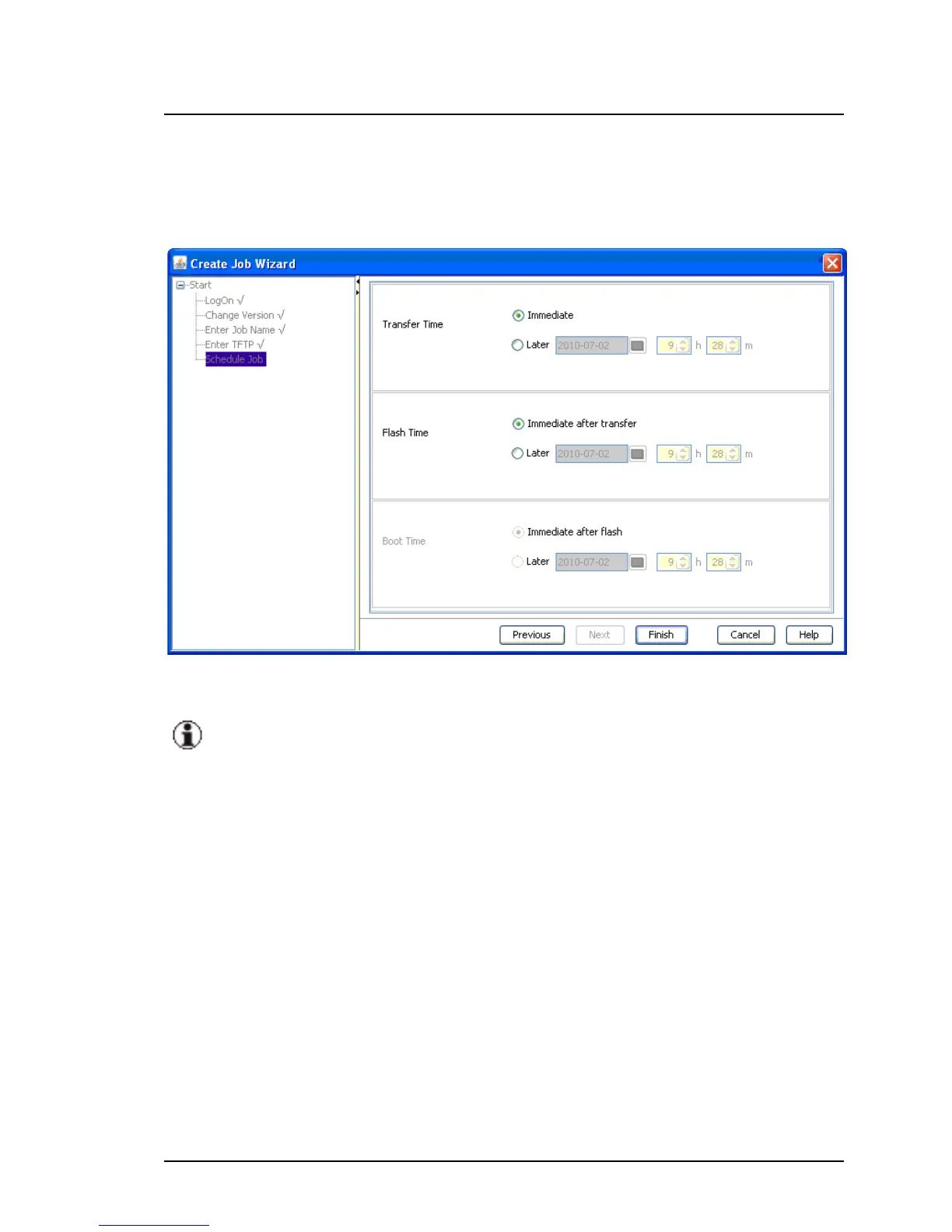 Schedule Job is the last step in the wizard. Here you specify the time at