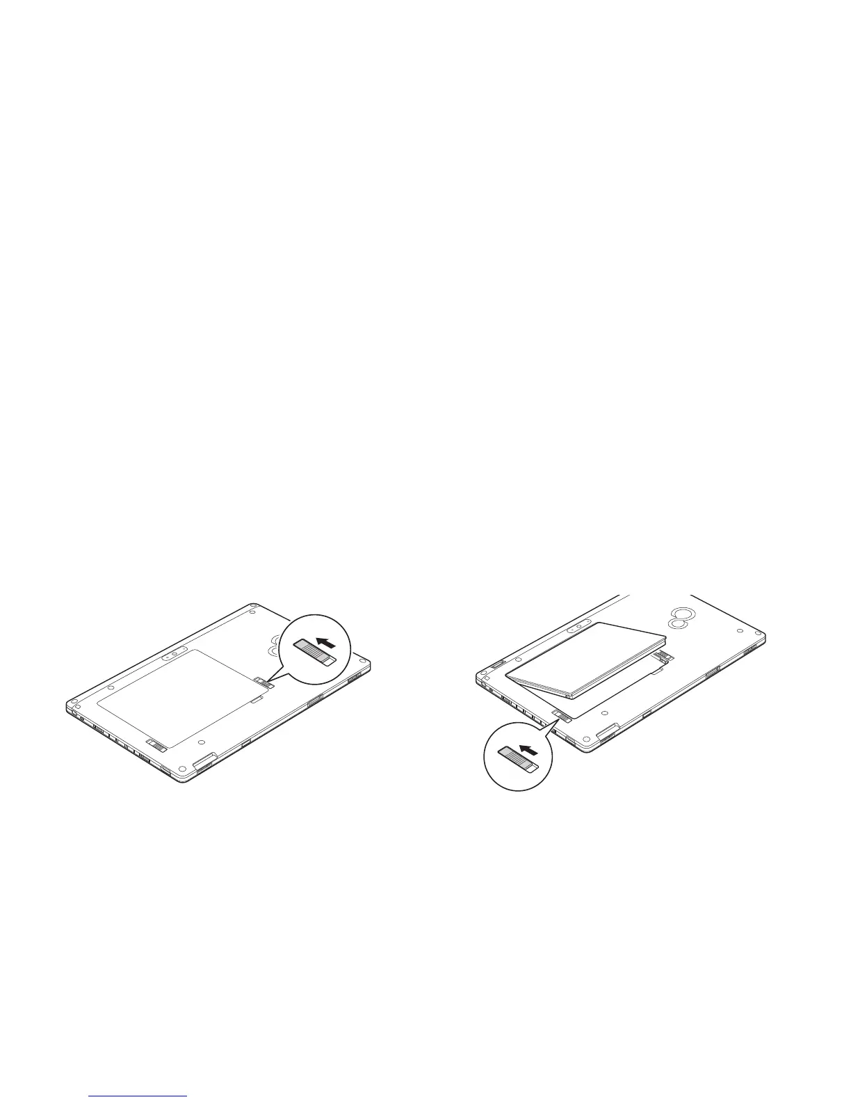 Dégagez la batterie en poussant d’abord le loquet droit vers l’arrière, puis en poussant et en maintenant le loquet