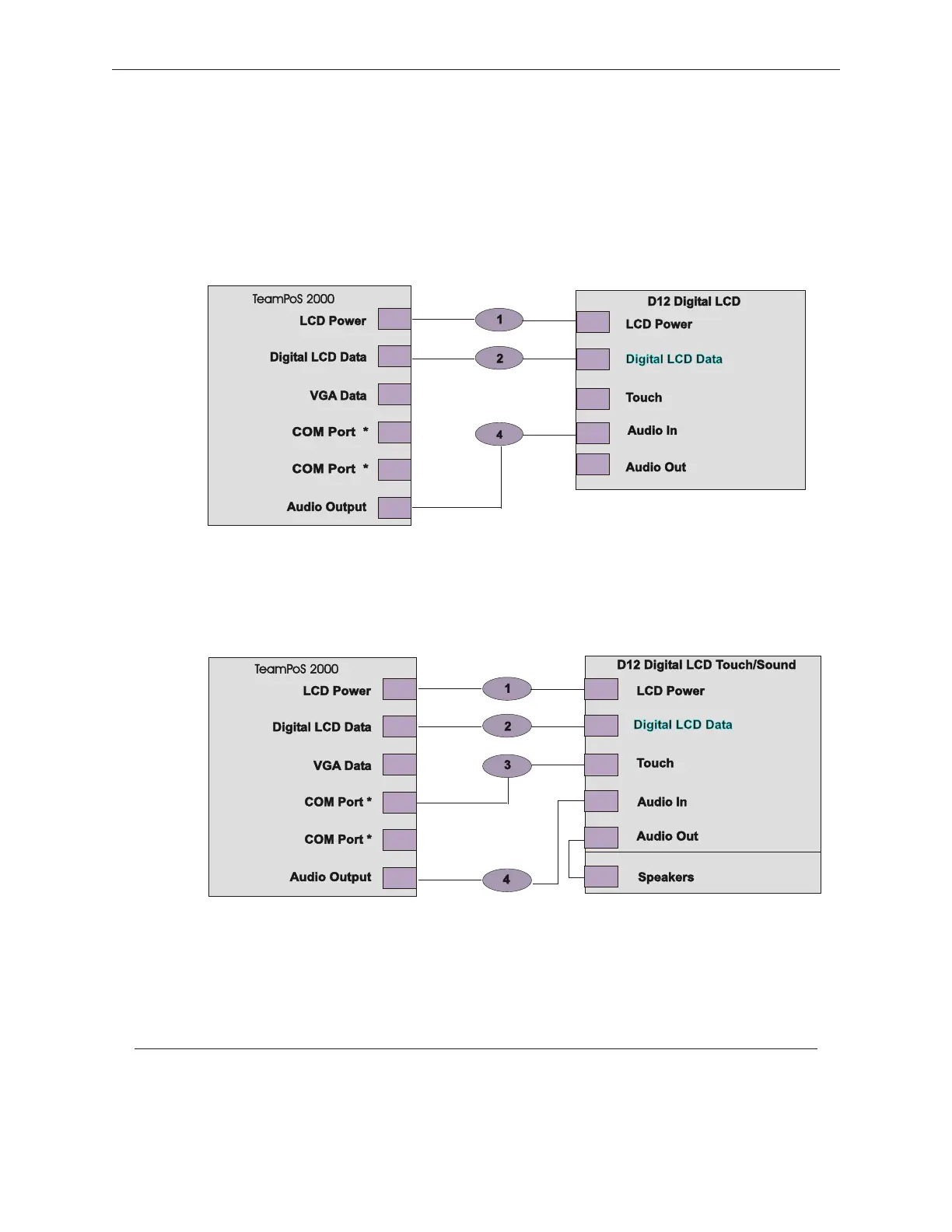 * The application software will determine where the touch panels connect to the TeamPoS 2000. The touch cables can