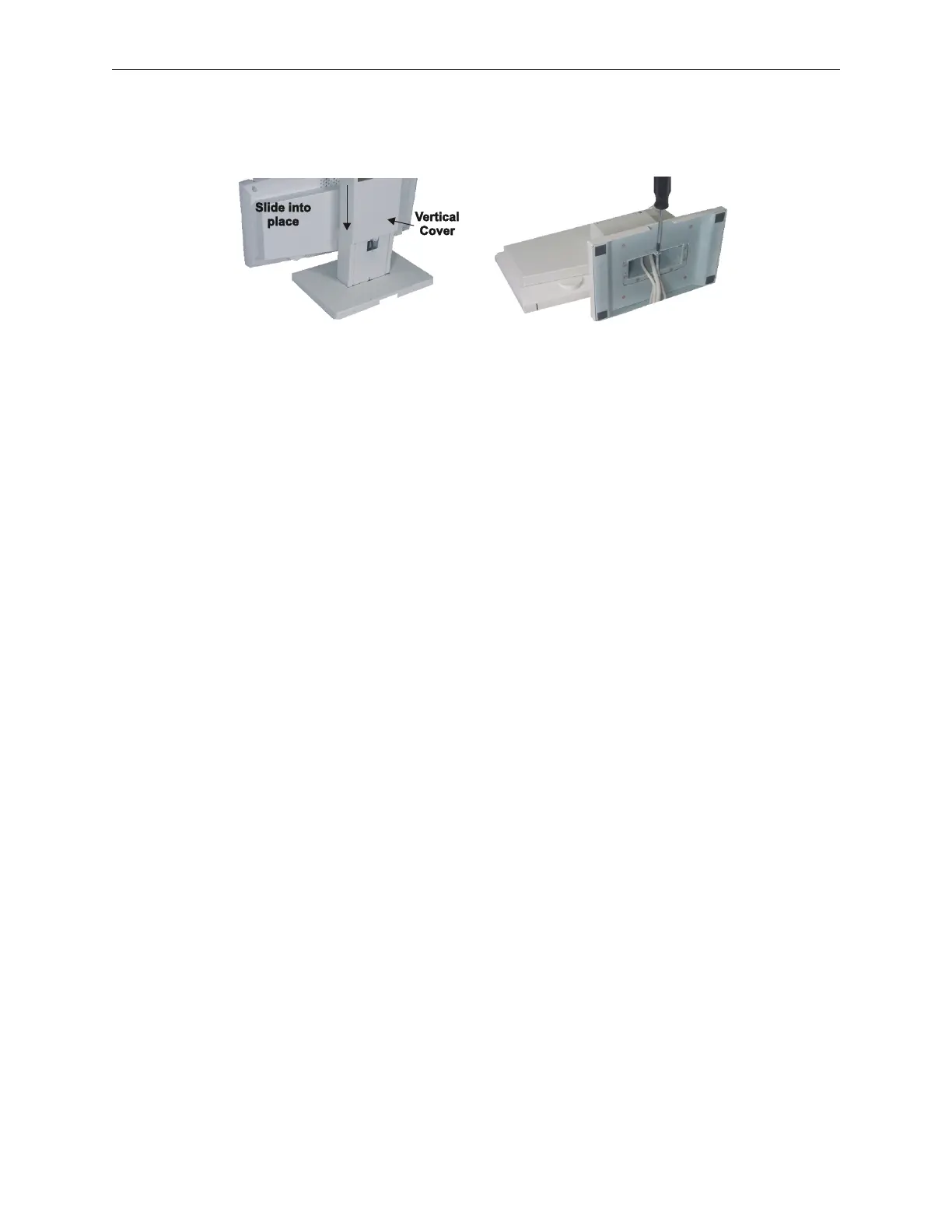 10. Slide the stand vertical cover into place and secure with one screw on the underside of