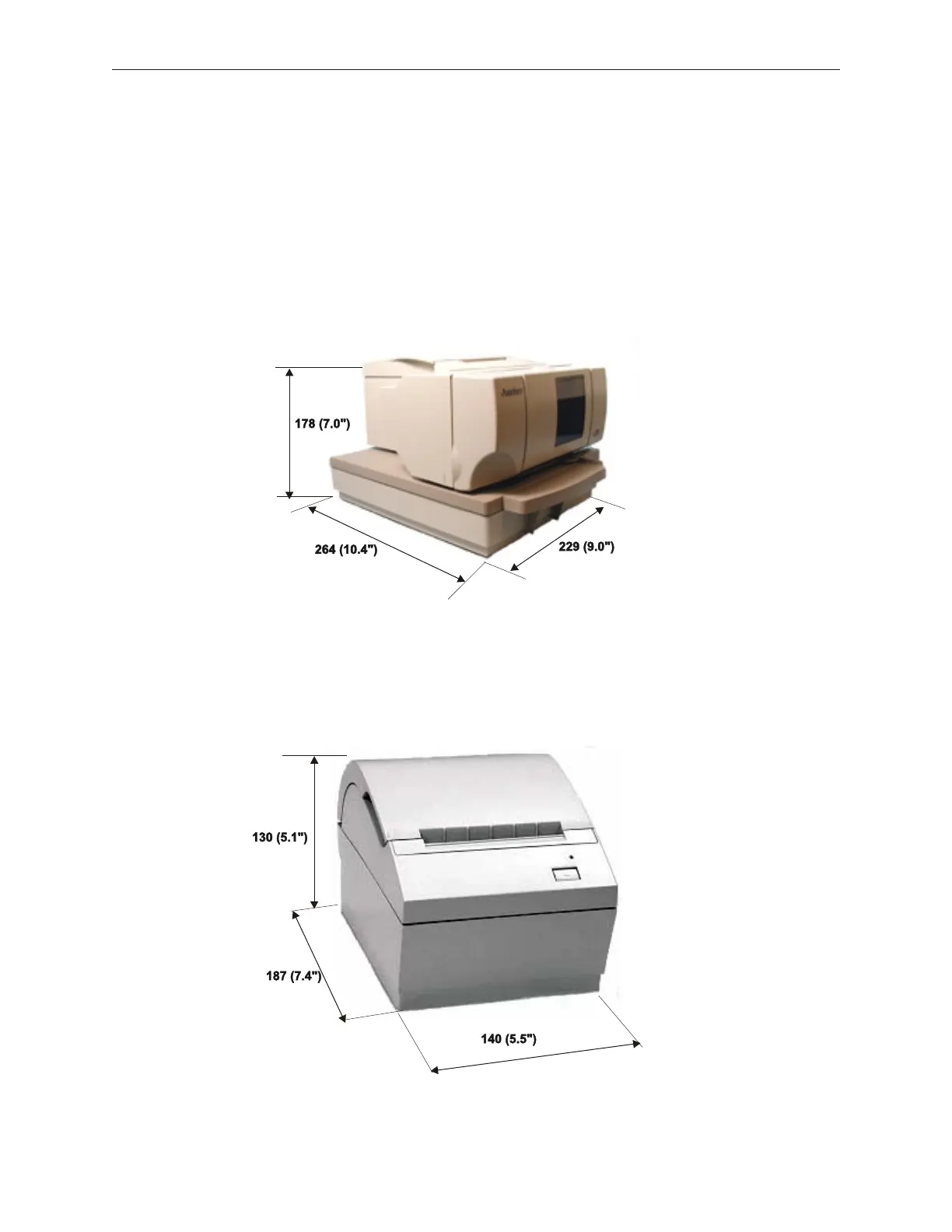 Dimensions for the A758 and A760 printers are the same.