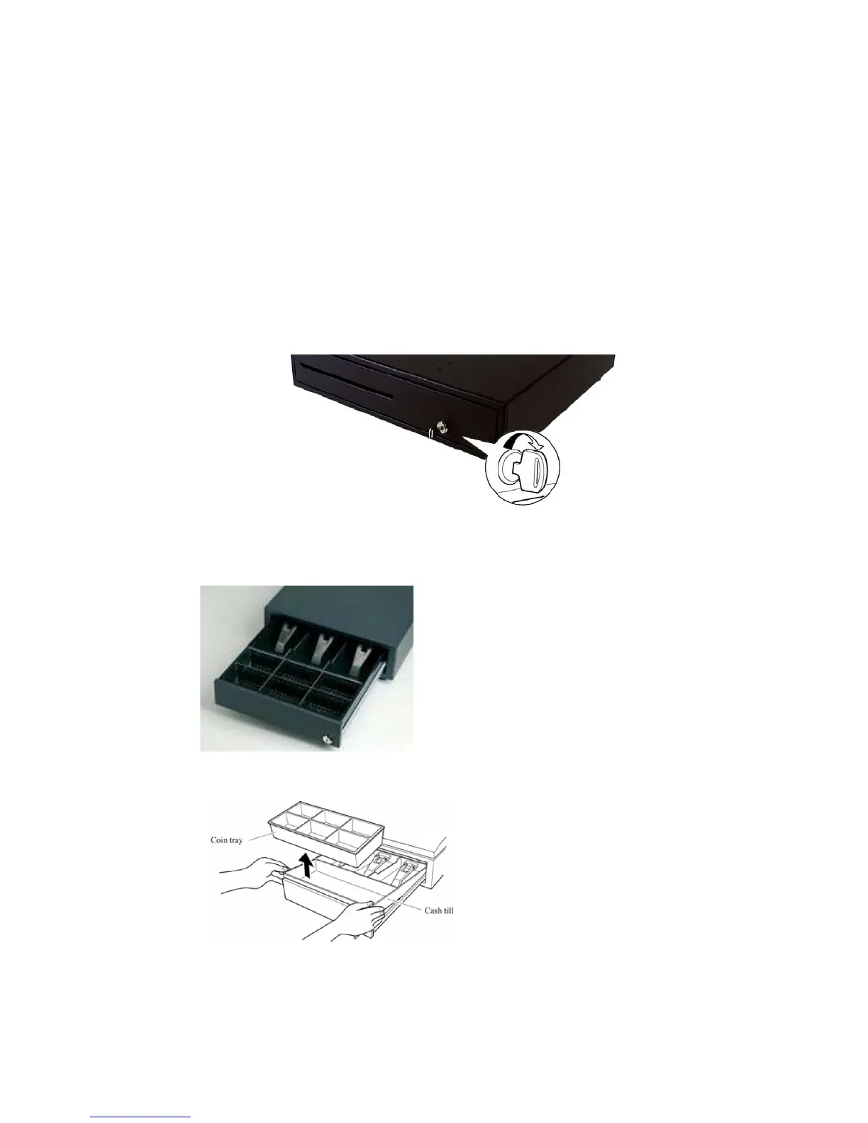 • Lift the till. If applicable, remove the coin tray first. Then, hold both sides of the cash till and