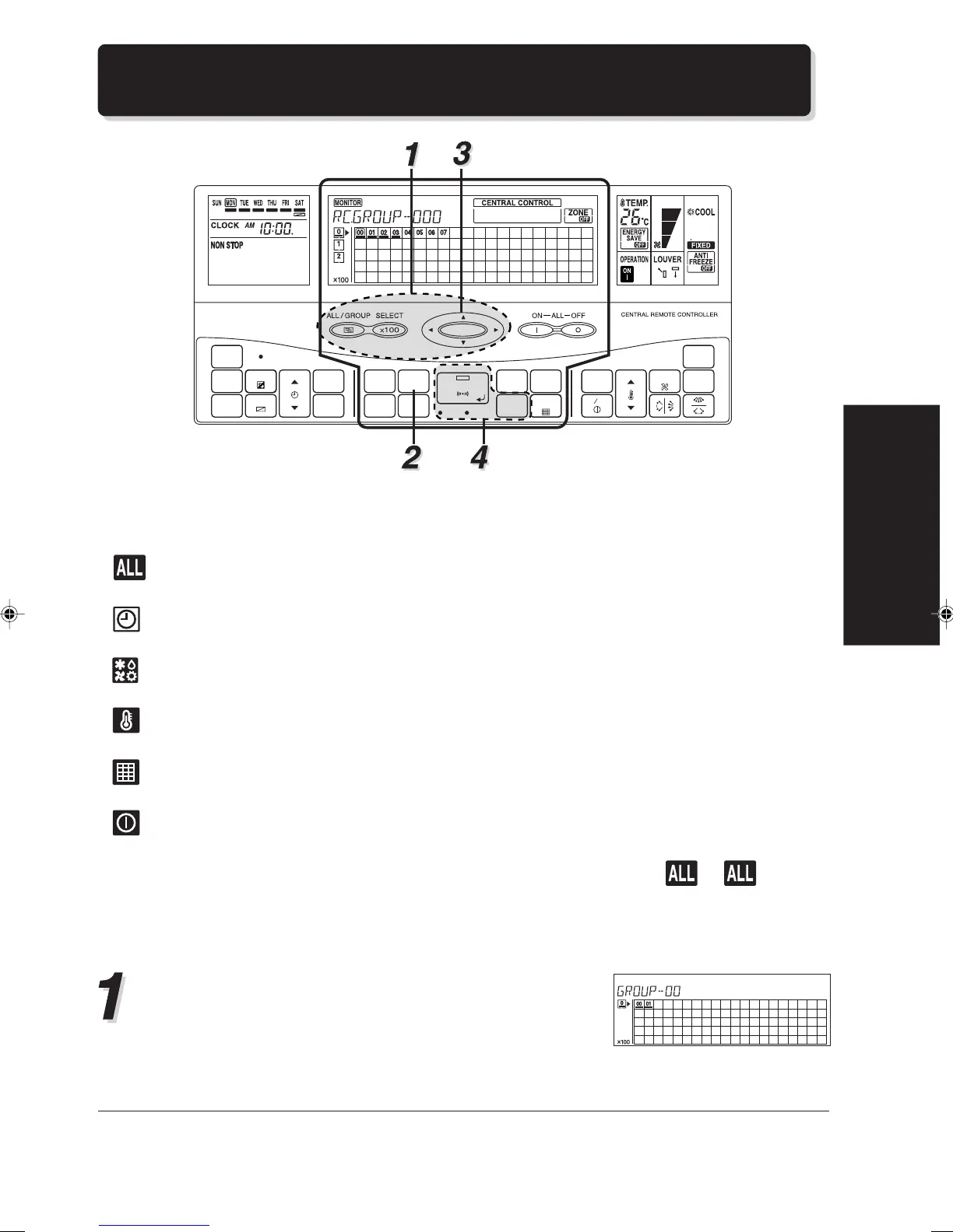 ler by pressing the central remote controller. The following shows the centrally controlling items that