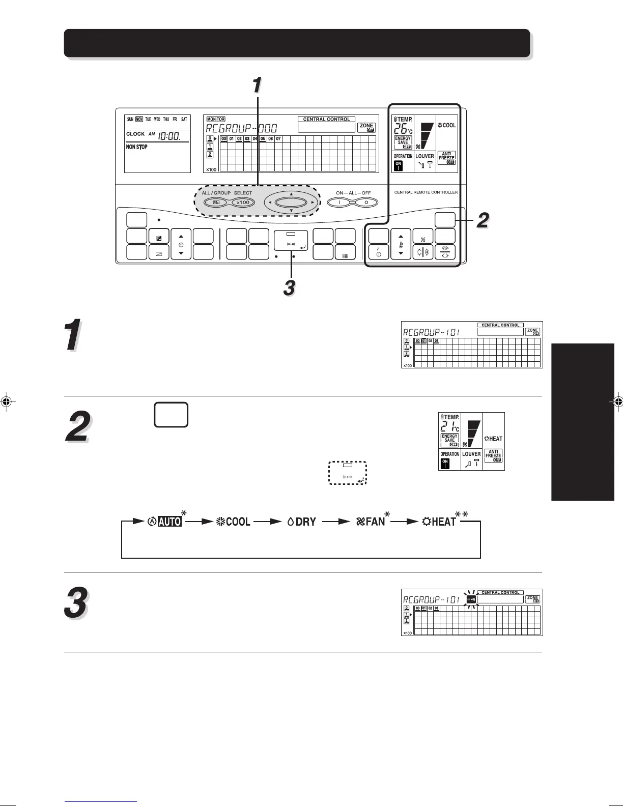 Enter the control mode to select the central control