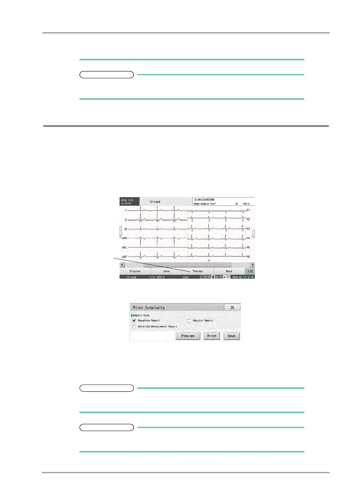 The report can be printed manually on external printer from the examination result screen.