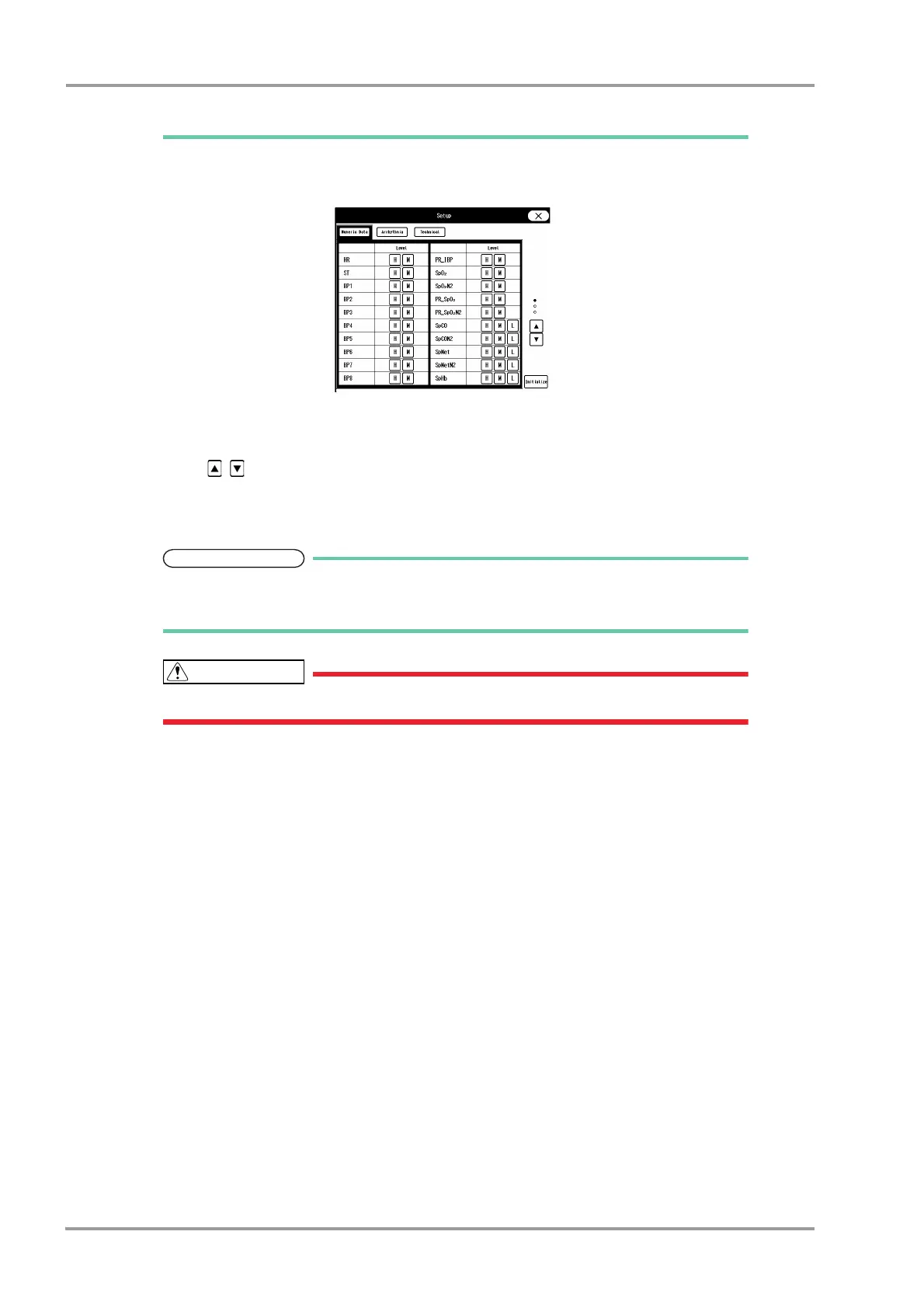 4 Select the alarm level from [S] / [H] / [M] / [L] / [OFF] for each parameter.