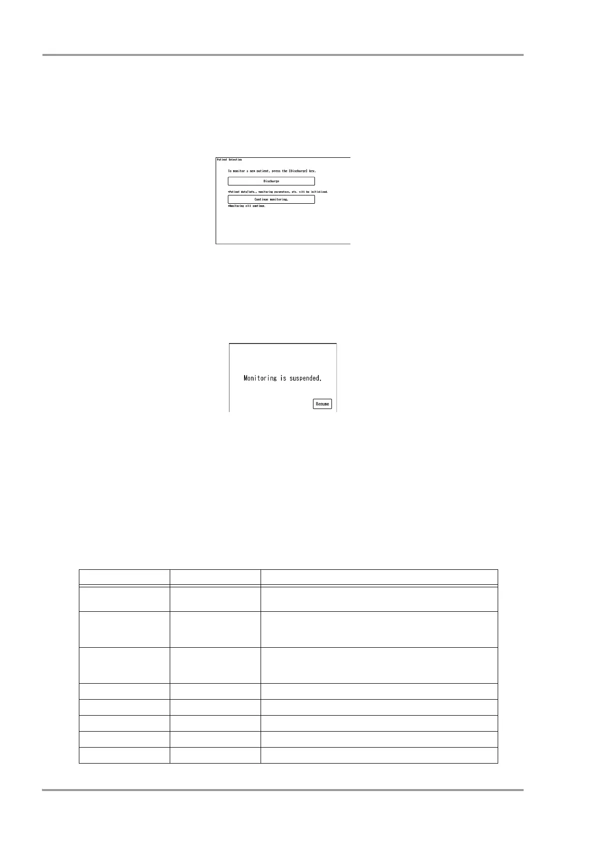 [Monitor Suspend]: Monitoring will be suspended after the discharge operation. The numeric data display will