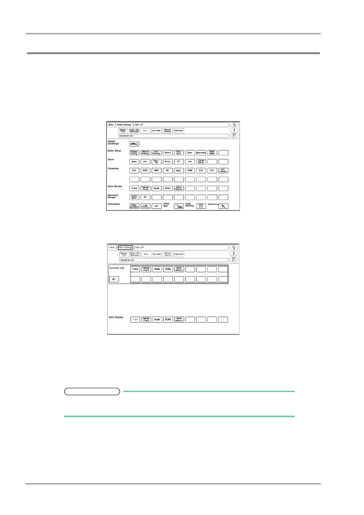 "Data Review", "Waveform Review", "Calculation", "Initial Settings", "Maintenance".