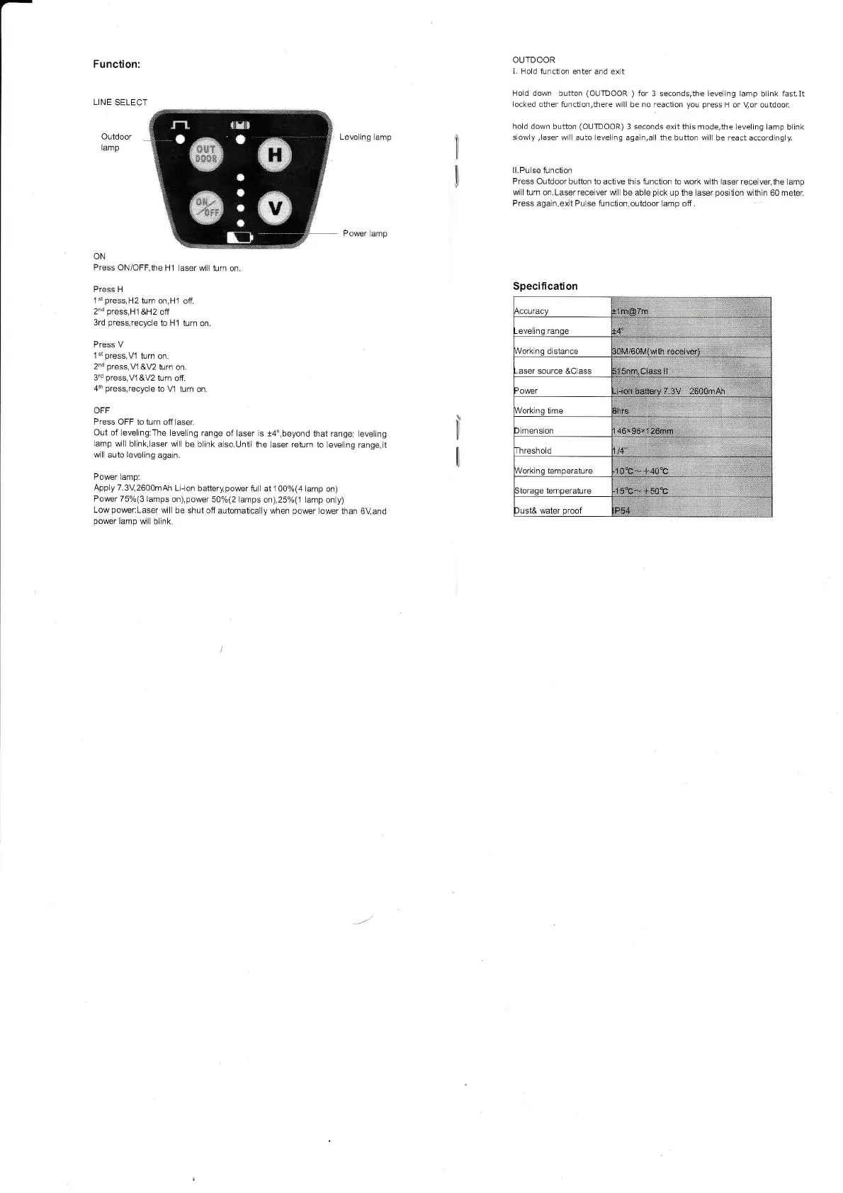 mode,the leveling lamp
