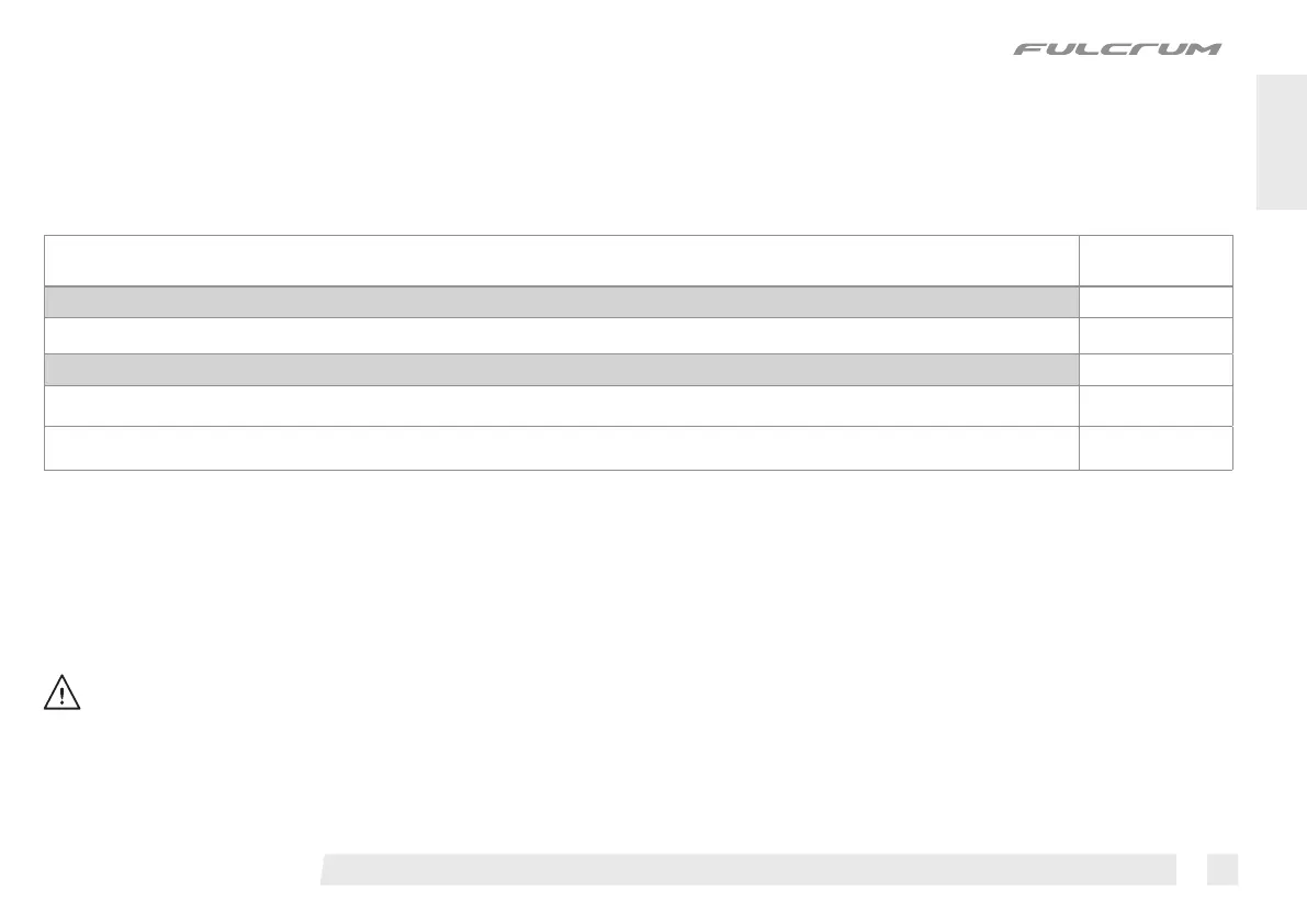 • Eventuali parti piegate o danneggiate in seguito a urti o incidenti devono essere sostituite con ricambi originali Fulcrum.