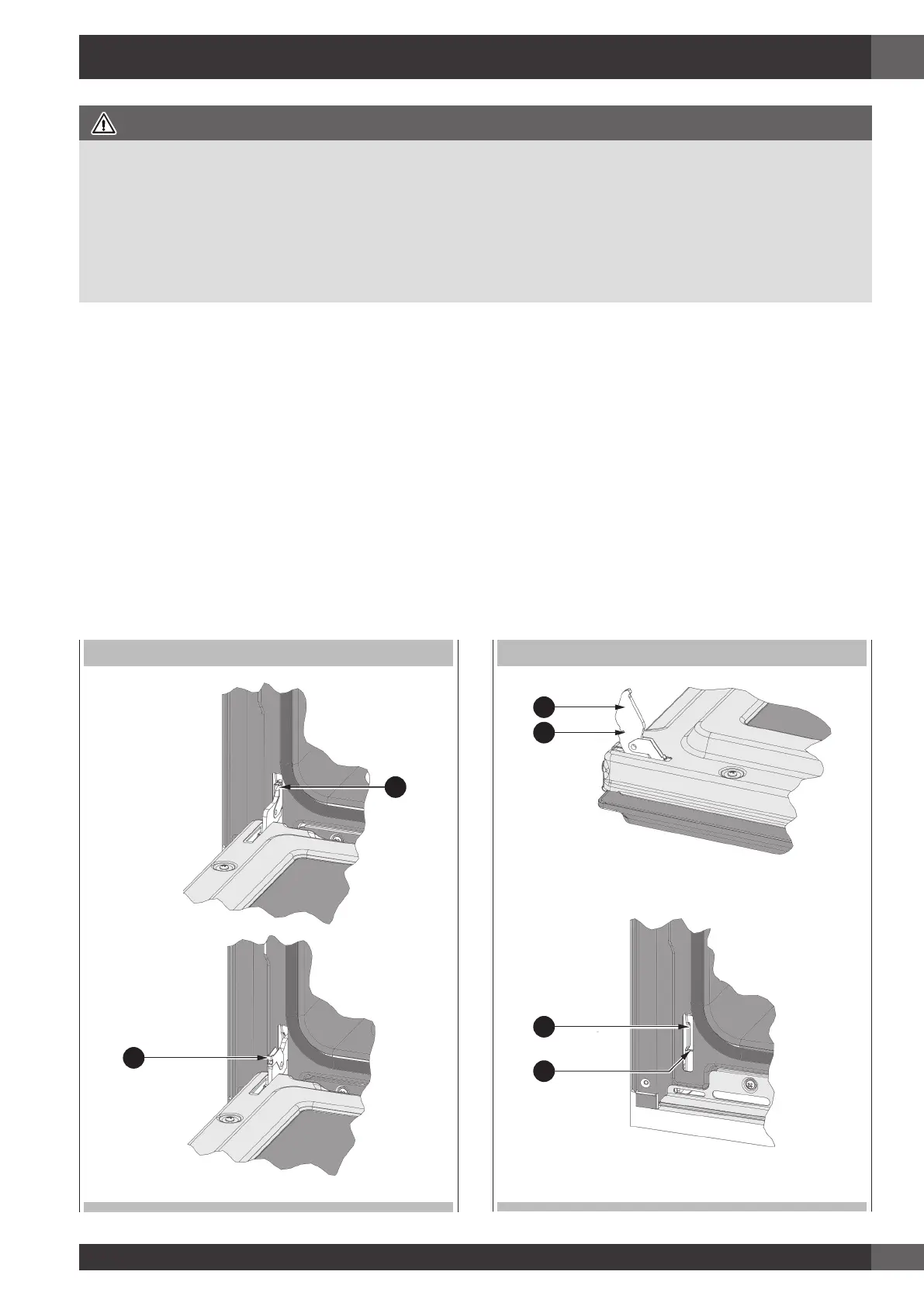 1. Insert the upper arms (2) of both hinges into the slots (3). The