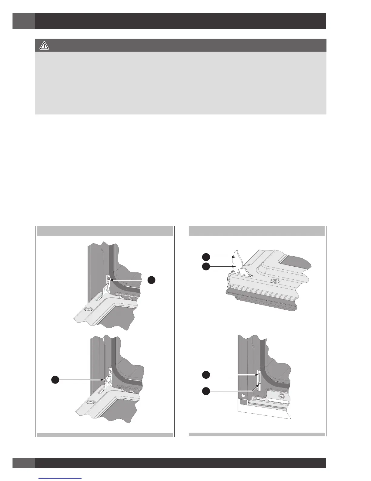 1. Insert the upper arms (2) of both hinges into the slots (3). The