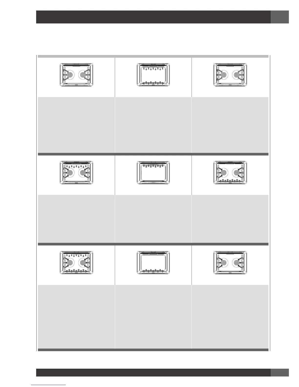of the heat sources during specific modes. The lower element is concealed under the oven cavity floor. All model configurations are