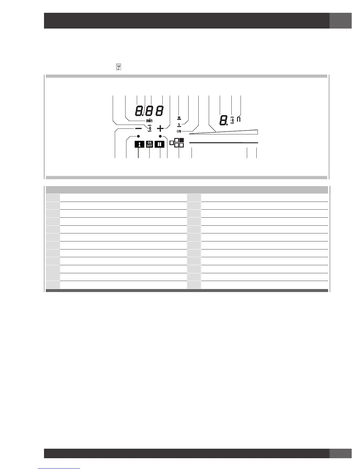 2 + Minuterie 14 Afficheur niveau zone de cuisson