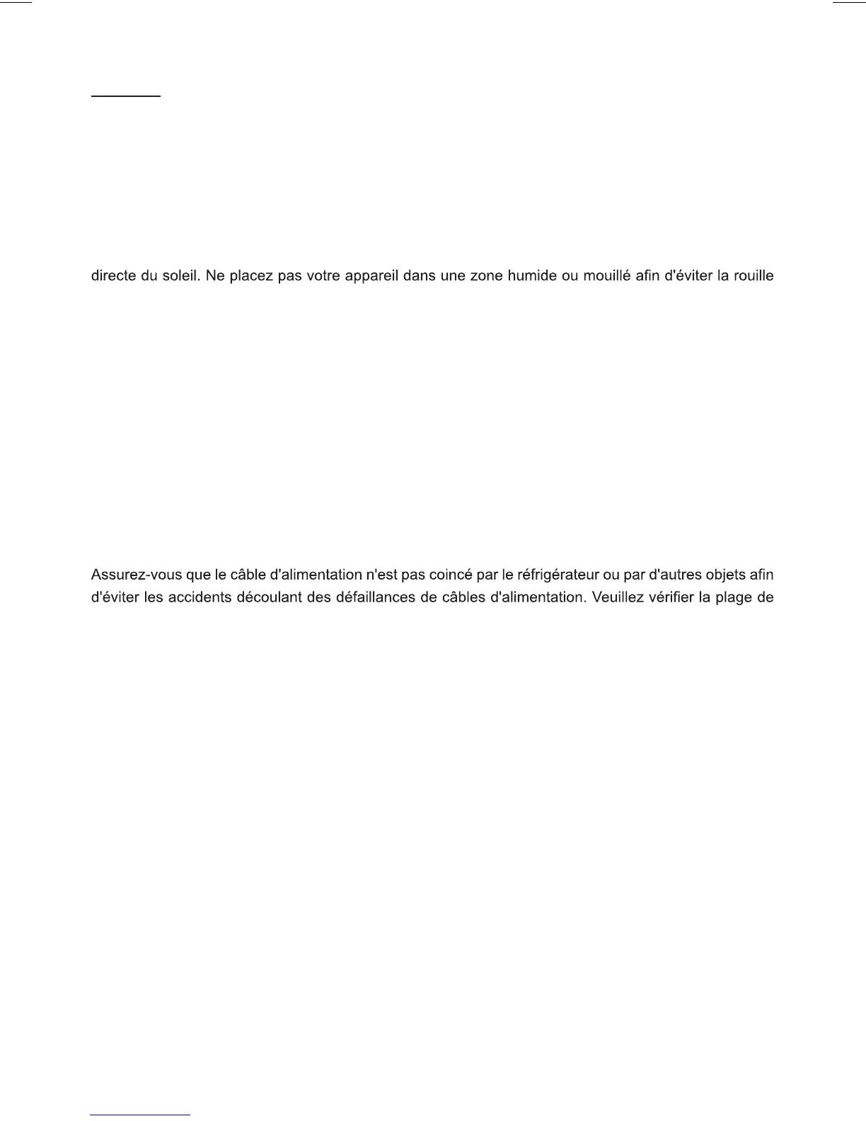 tension de votre réfrigérateur par rapport à l'alimentation électrique ambiante avant la mise en marche.