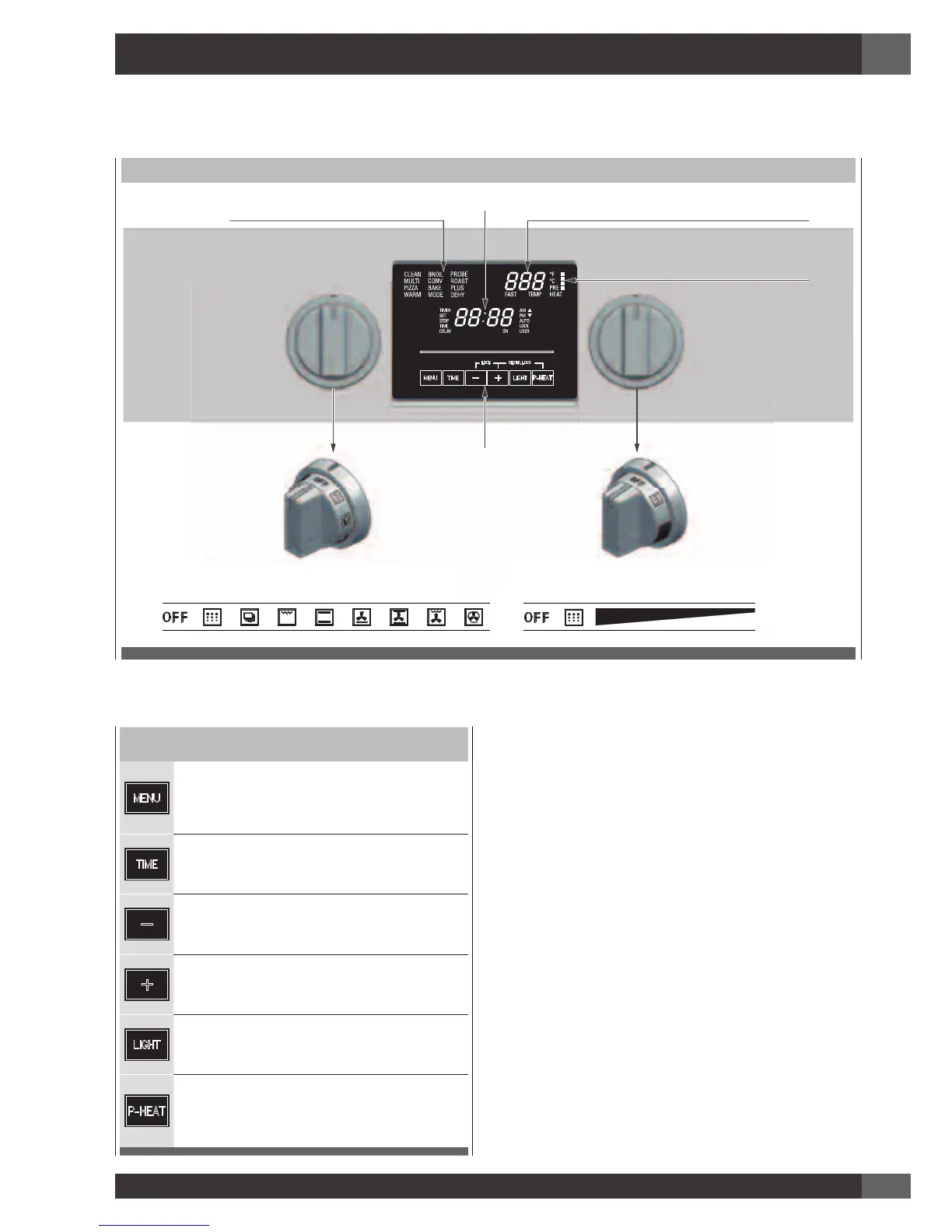 La intefaz del usuario tiene las siguientes características: pantalla, indicadores luminosos de precalentamiento, interruptores de