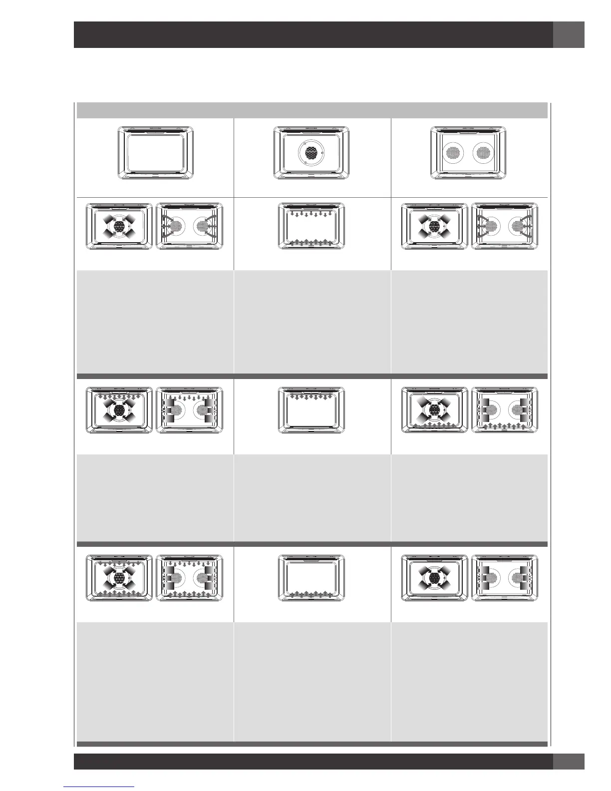 The following illustrations give an overview of what happens in the oven with each mode setting. The arrows represent the location