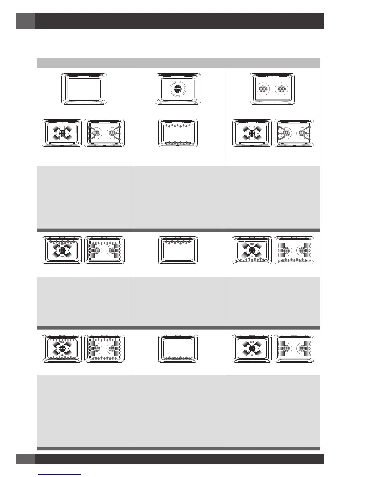 représentent la situation de la source de chaleur pendant les modes spécifiques. L’élément inférieur est dissimulé sous la sole du four.