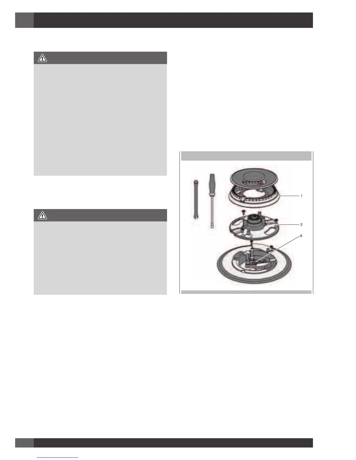• Remove grate and burner cap (1).