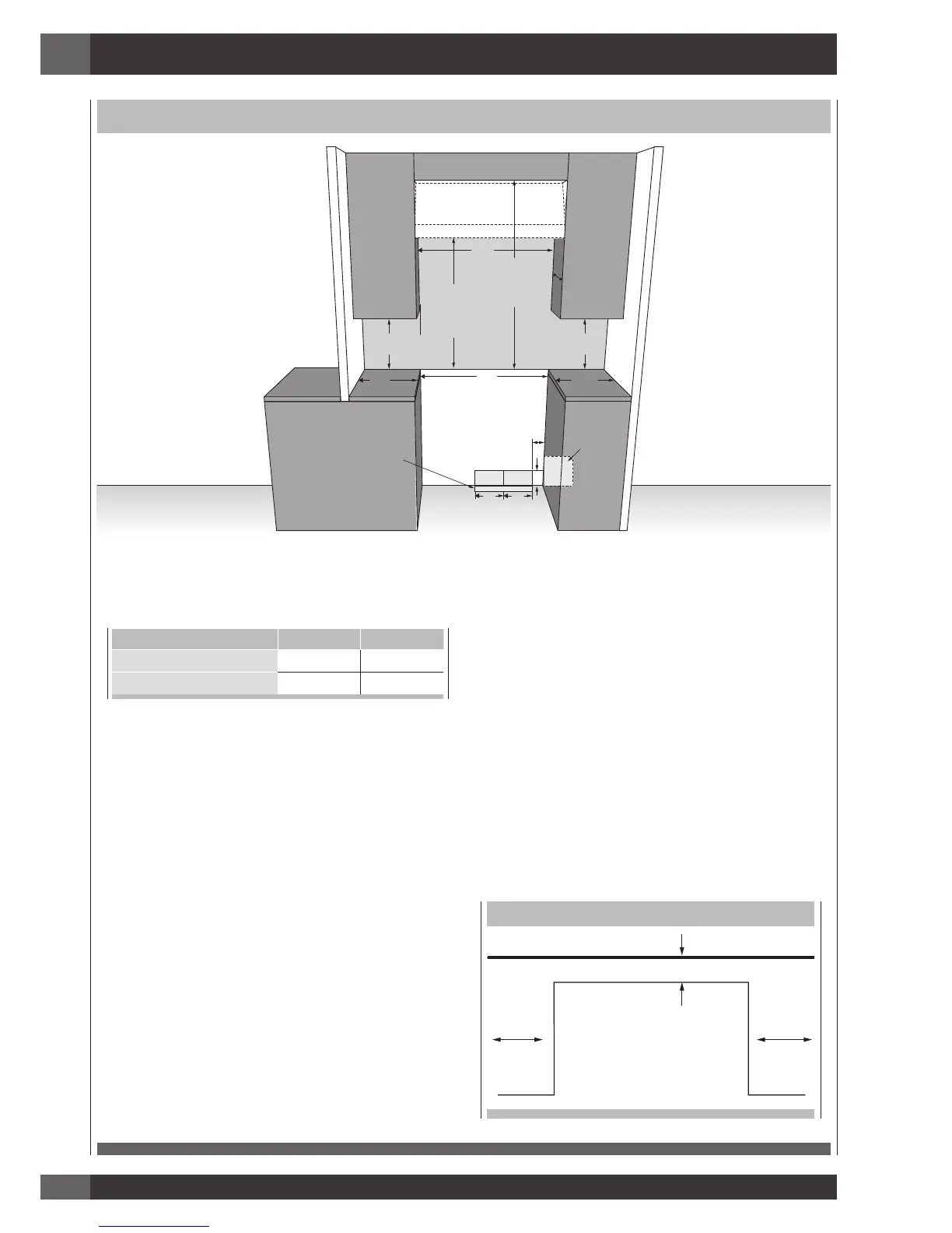 La totalité de la surface du mur arrière ainsi que la surface se trouvant au-dessus de la table de cuisson doit être faite d’une matière ignifuge.