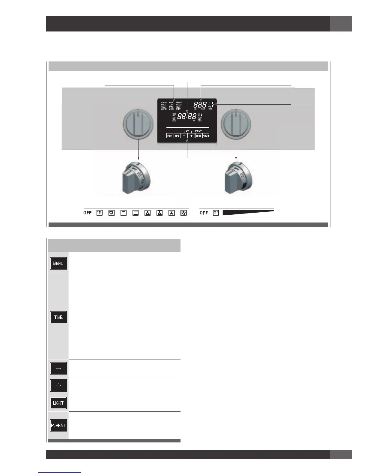 La intefaz del usuario tiene las siguientes características: pantalla, indicadores luminosos de precalentamiento, interruptores de
