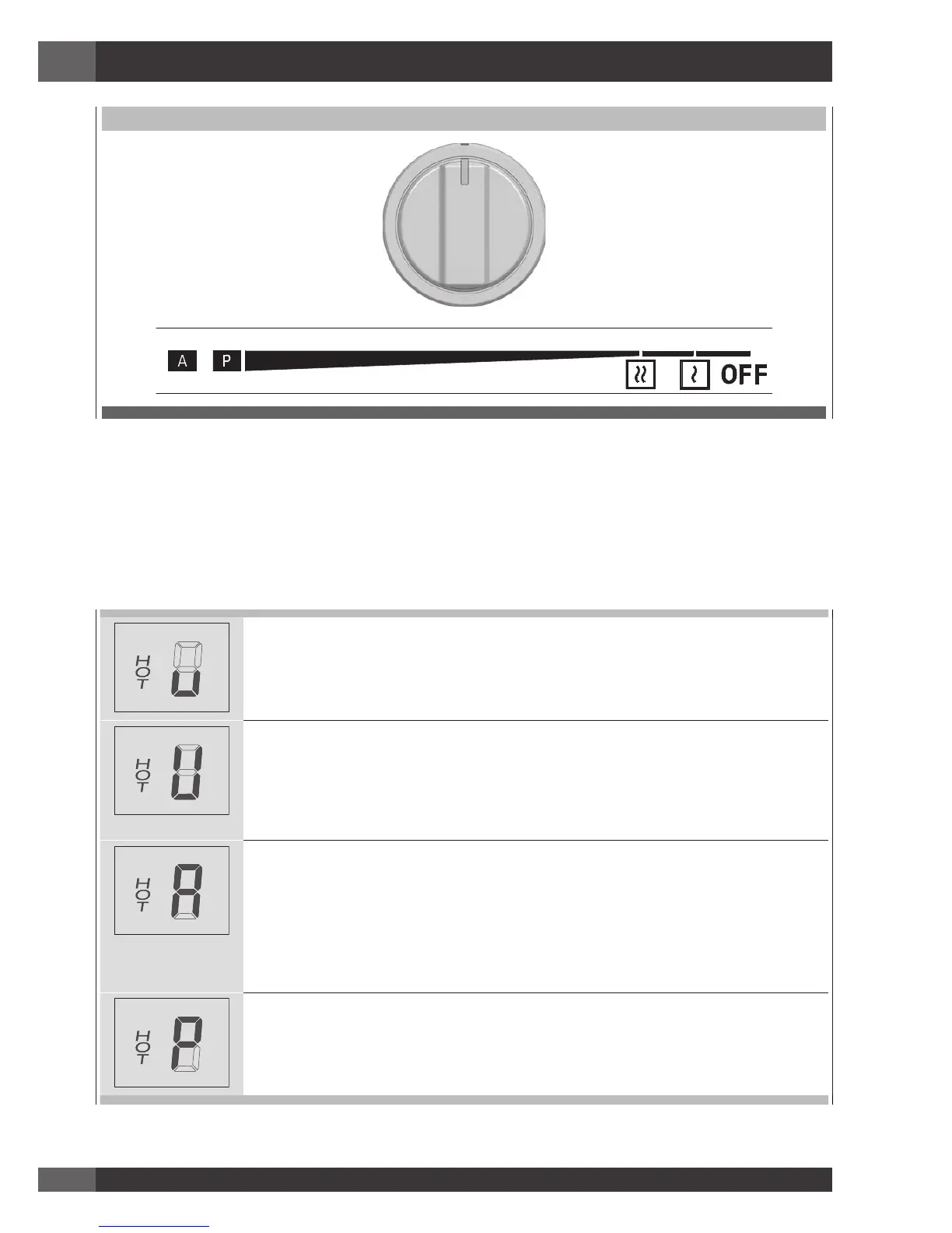 between a minimum of 1 to a maximum of 9. To reduce the power of the cooking zone again it is necessary to turn the knob
