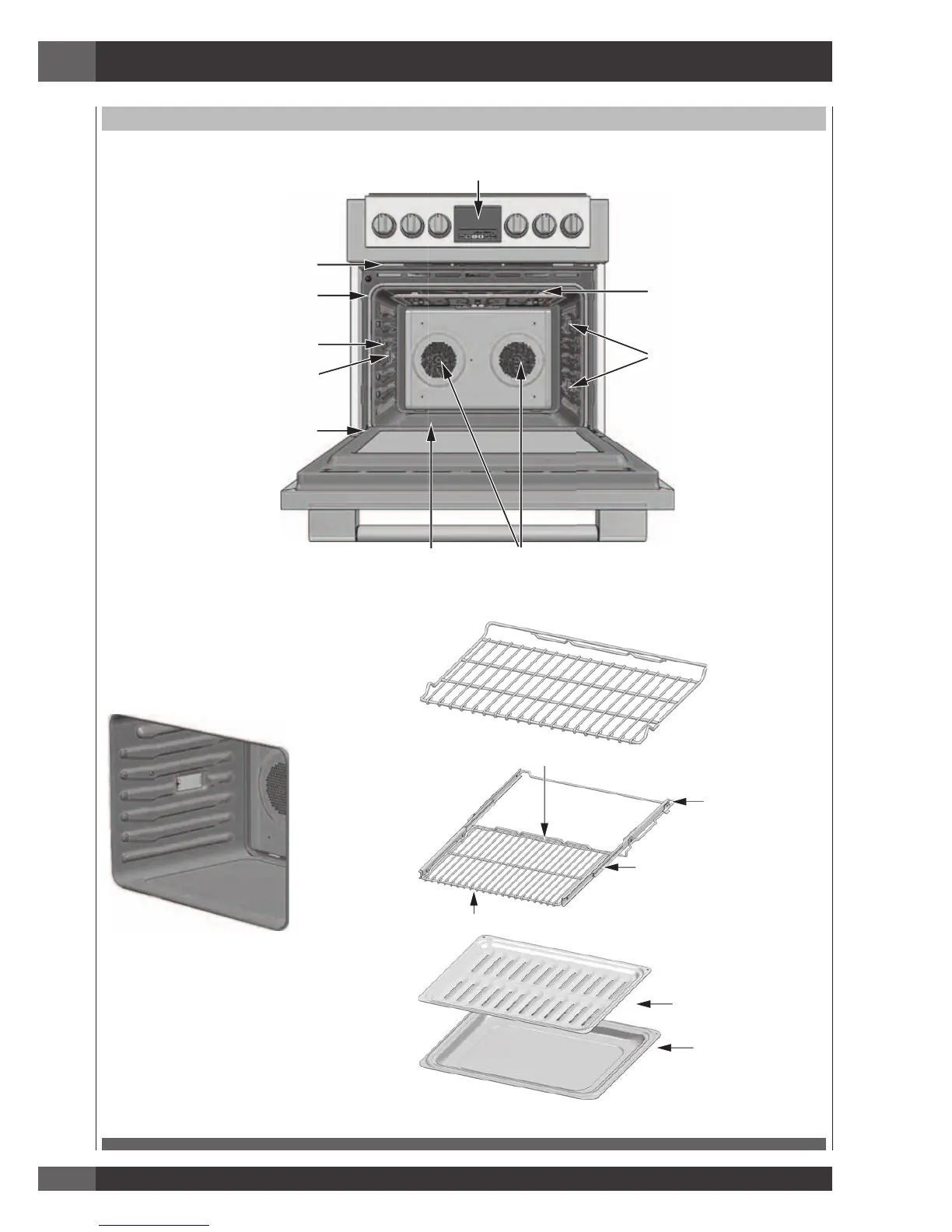 Elément de cuisson (non visible) Ventilateur à convention et élément (non visible)