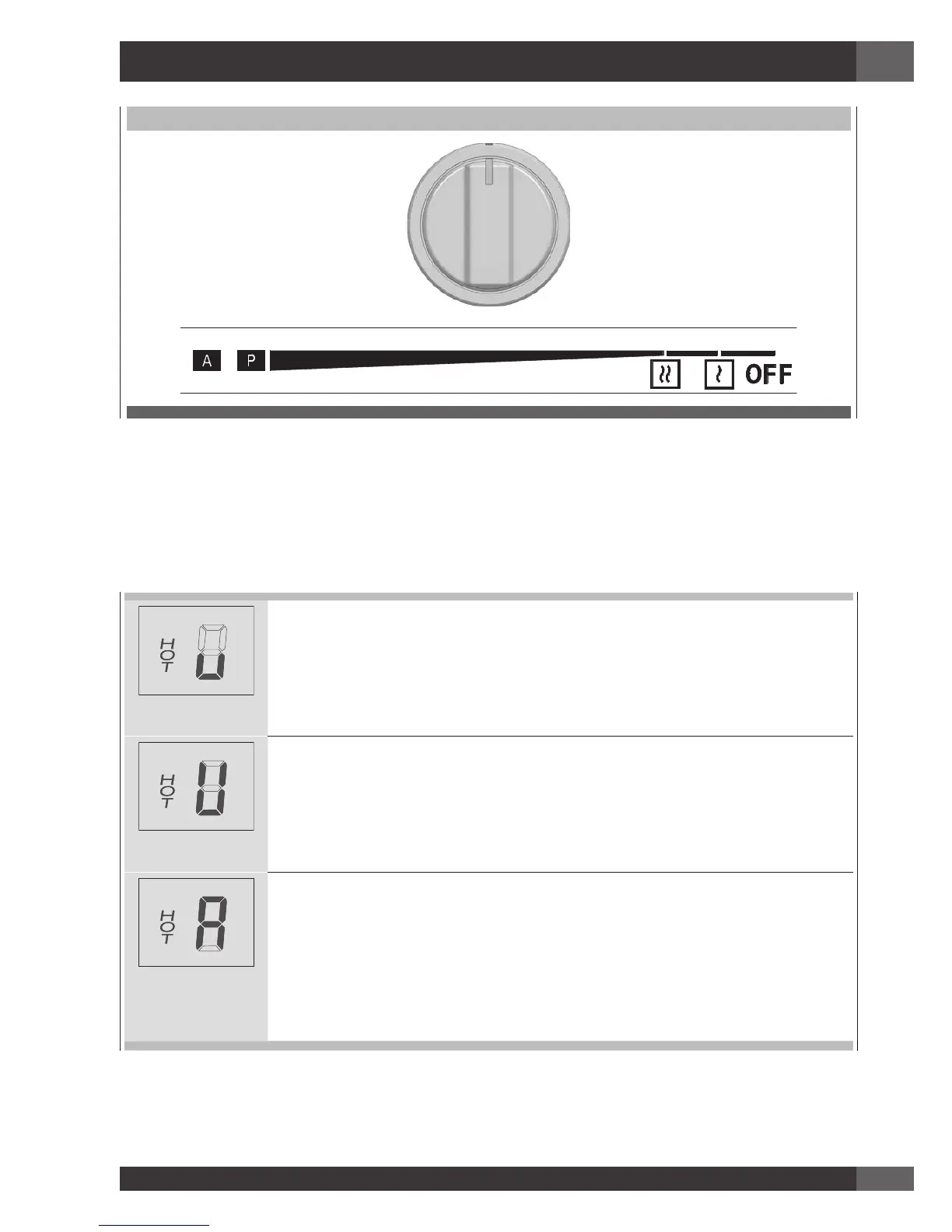 1 et un maximum de 9. Pour diminuer la puissance de la zone de cuisson, tourner le bouton dans le sens antihoraire.