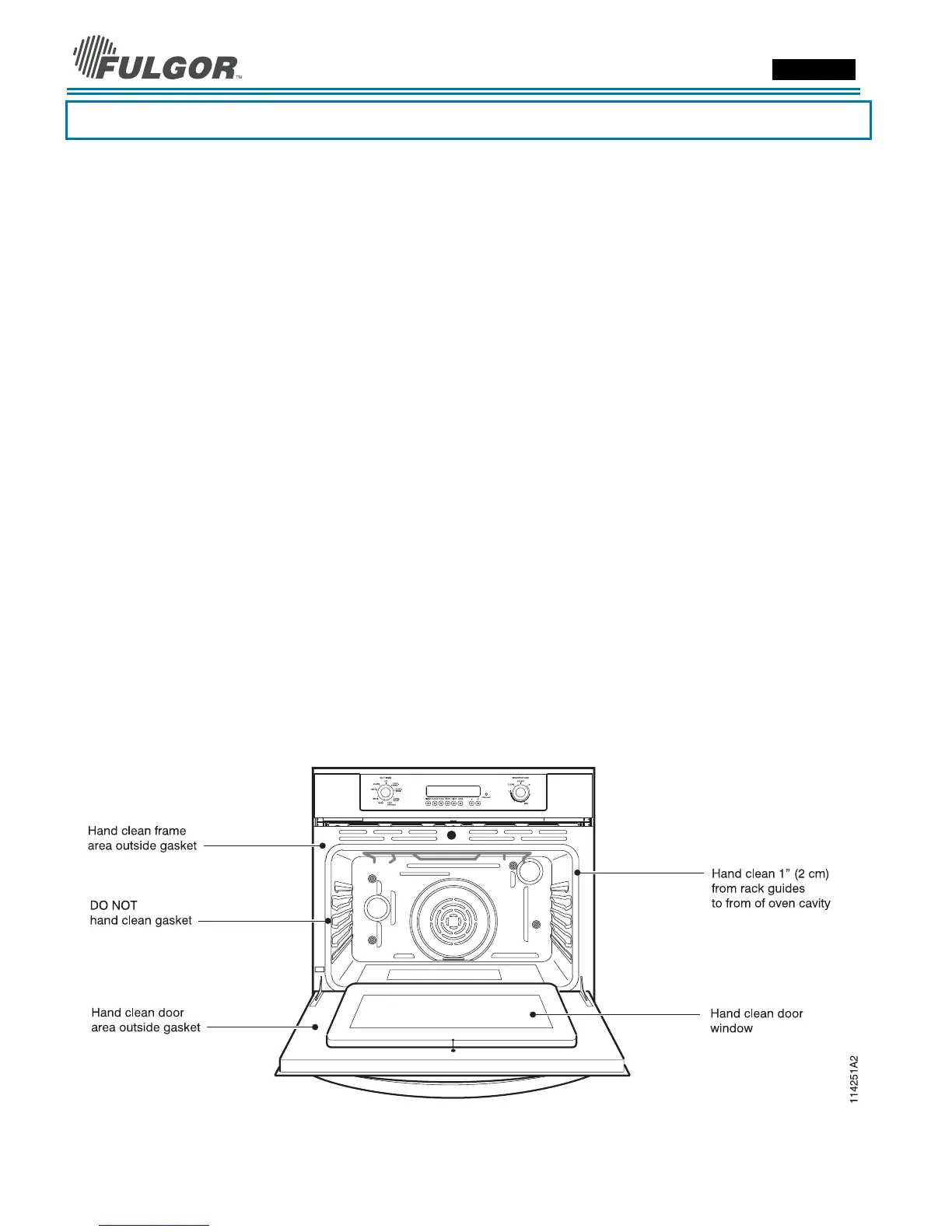 1-½ “ (2-3 cm) inside the frame with detergent and hot water. Do not rub the gasket on oven. Hand clean