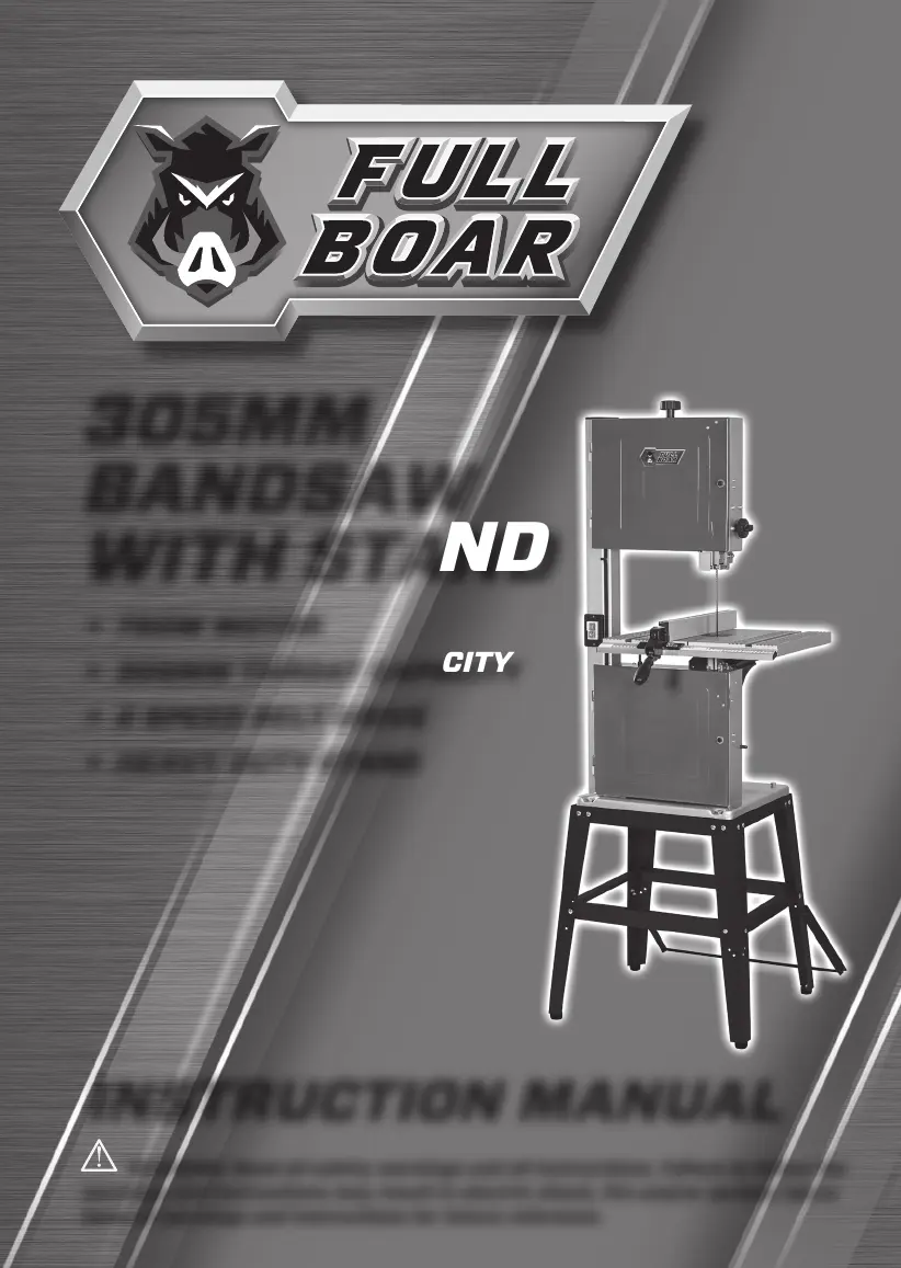 If the blade keeps falling off the drive wheels of your Full Boar Saw, try these adjustments: * Adjust the top wheel tracking knob. * Adjust the lower pulley tracking using the 4 screws at the back of the unit. * If the lower wheel tracking is out, adjust the upper and lower screws. * If the wheels keep throwing the blade, adjust the horizontal angle using the left and right screws. Remember to make small adjustments and ensure all adjustment screws are tight before use.