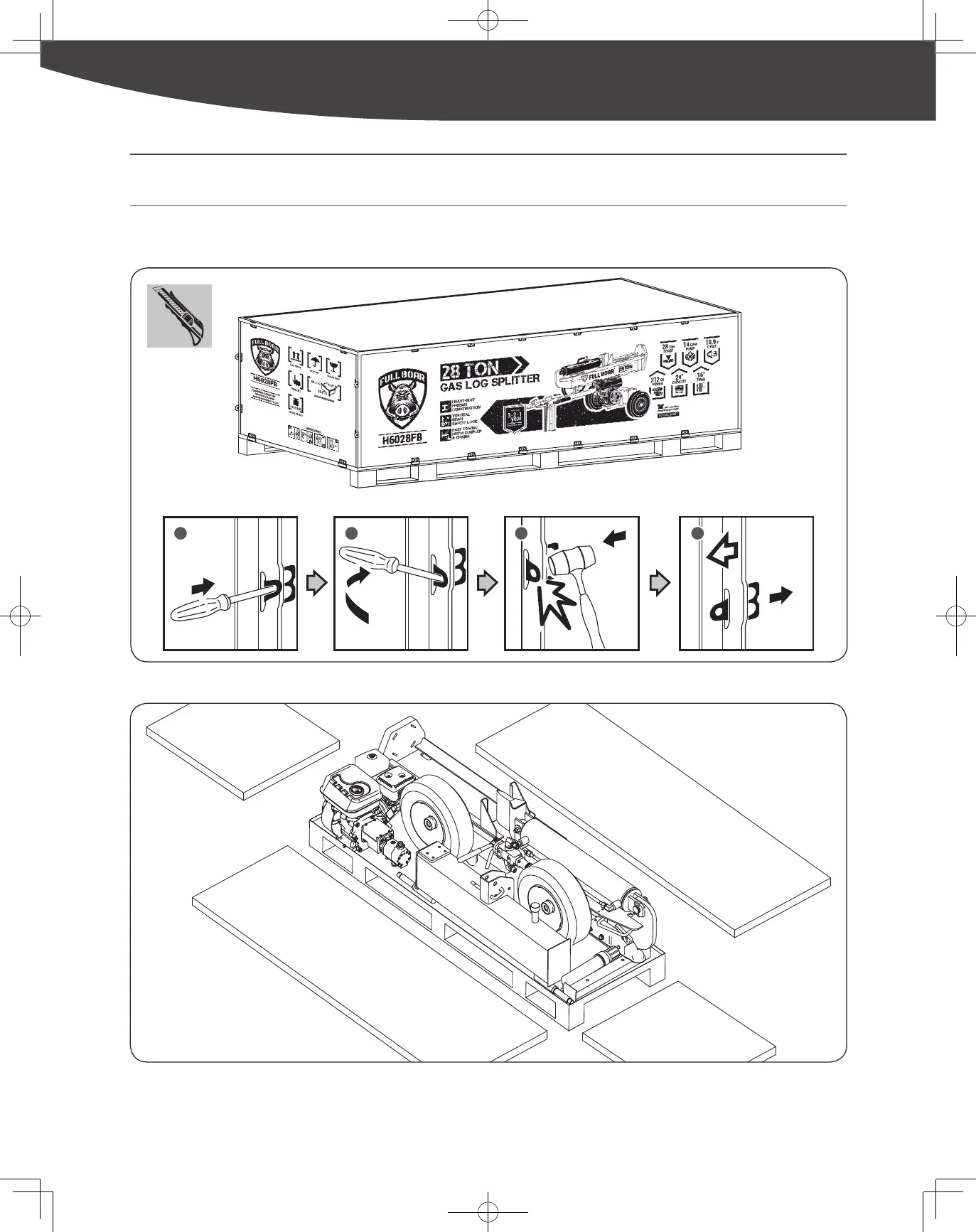 Use the screwdriver and hammer to open all the side locks. Remove all the polywood plates. Remove all the loose parts on the bottom pallets. Use scissors or