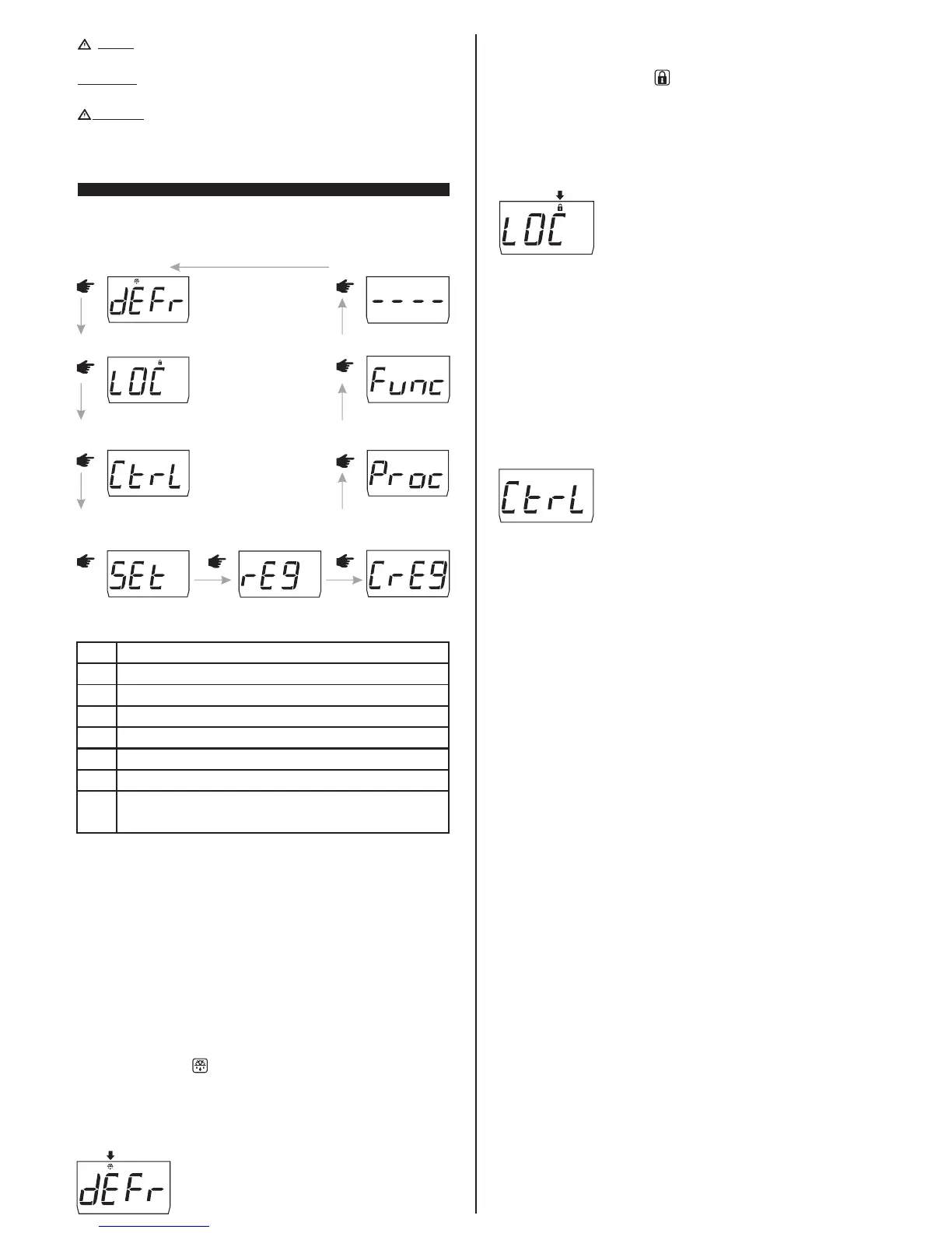 OBS: If the functions lockdown is enabled, when pressing the keys, the controller will display >or<