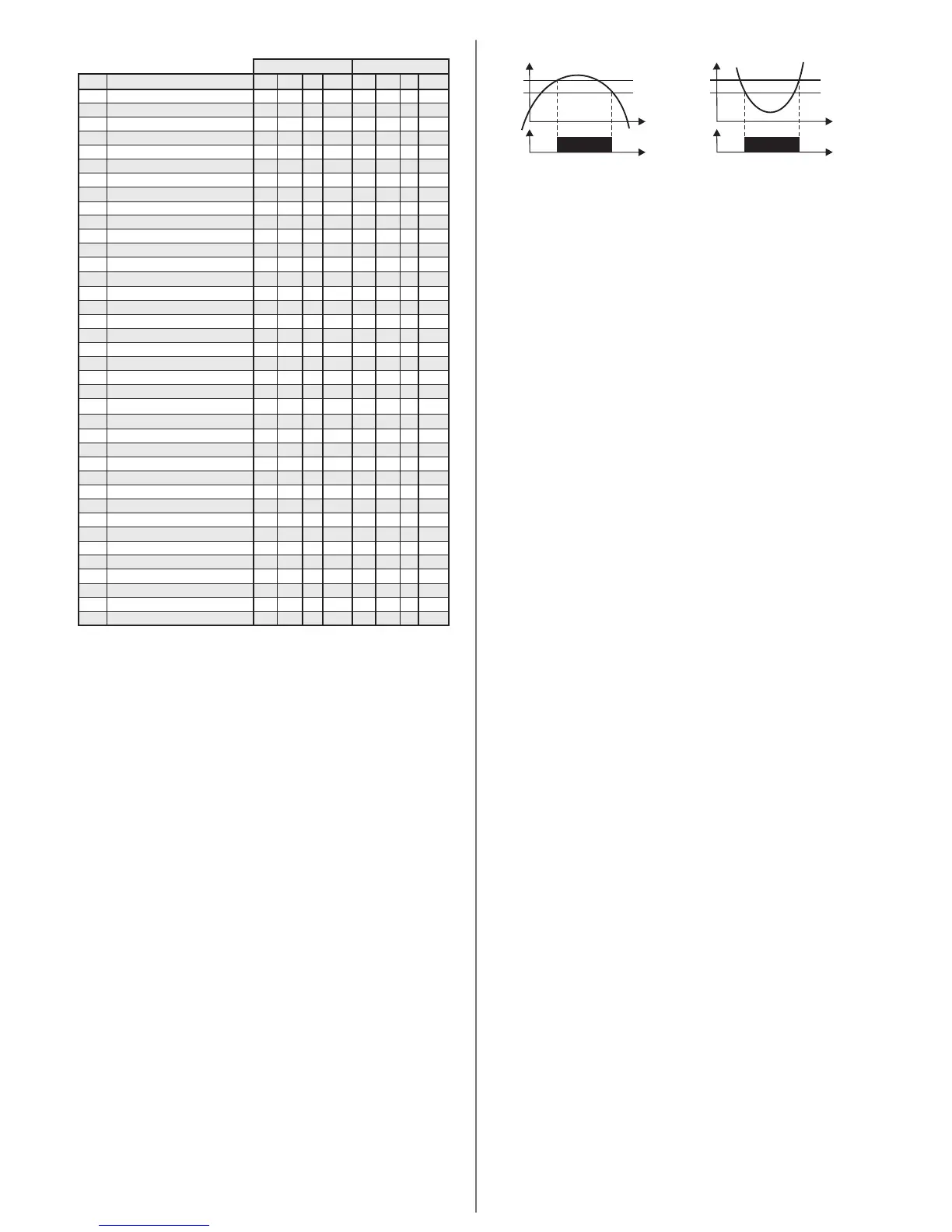 values of setpoint, control differential, cooling time and defrost time configured in the parameters table.