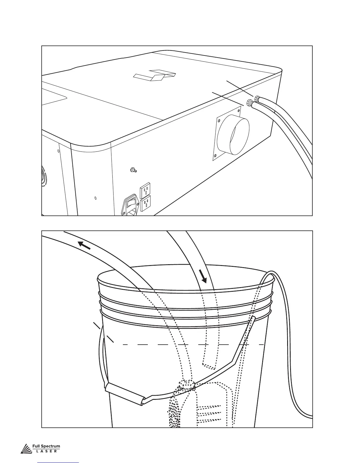 “water outlet”. Place the other end of the water tubing into bucket of distilled water.