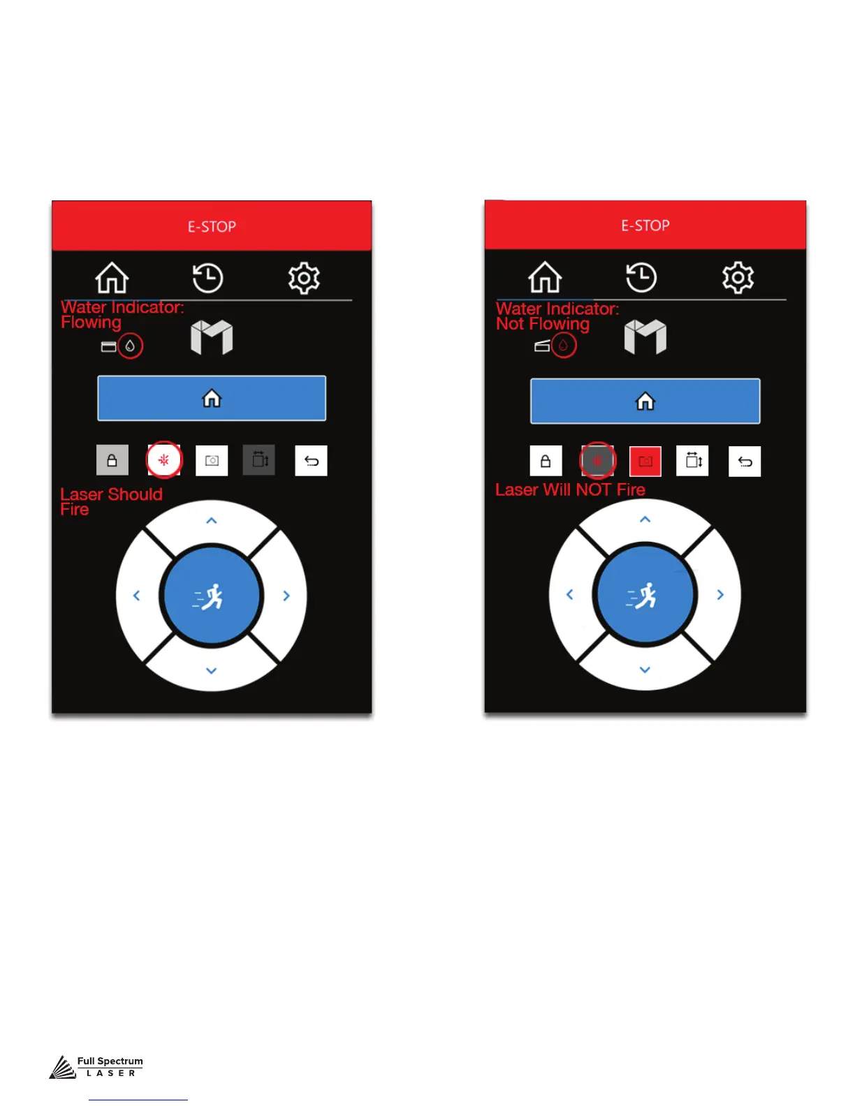 The laser will not re unless water is owing through the laser tube. The following indicator informs