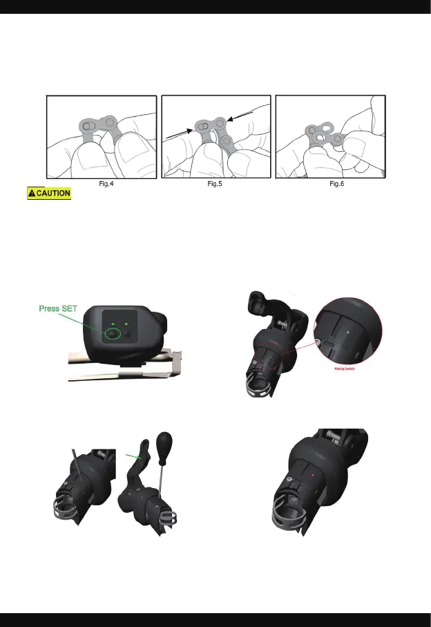 2. Firmly squeeze the link bushings together so that the pins and plates decouple. (Fig.5)