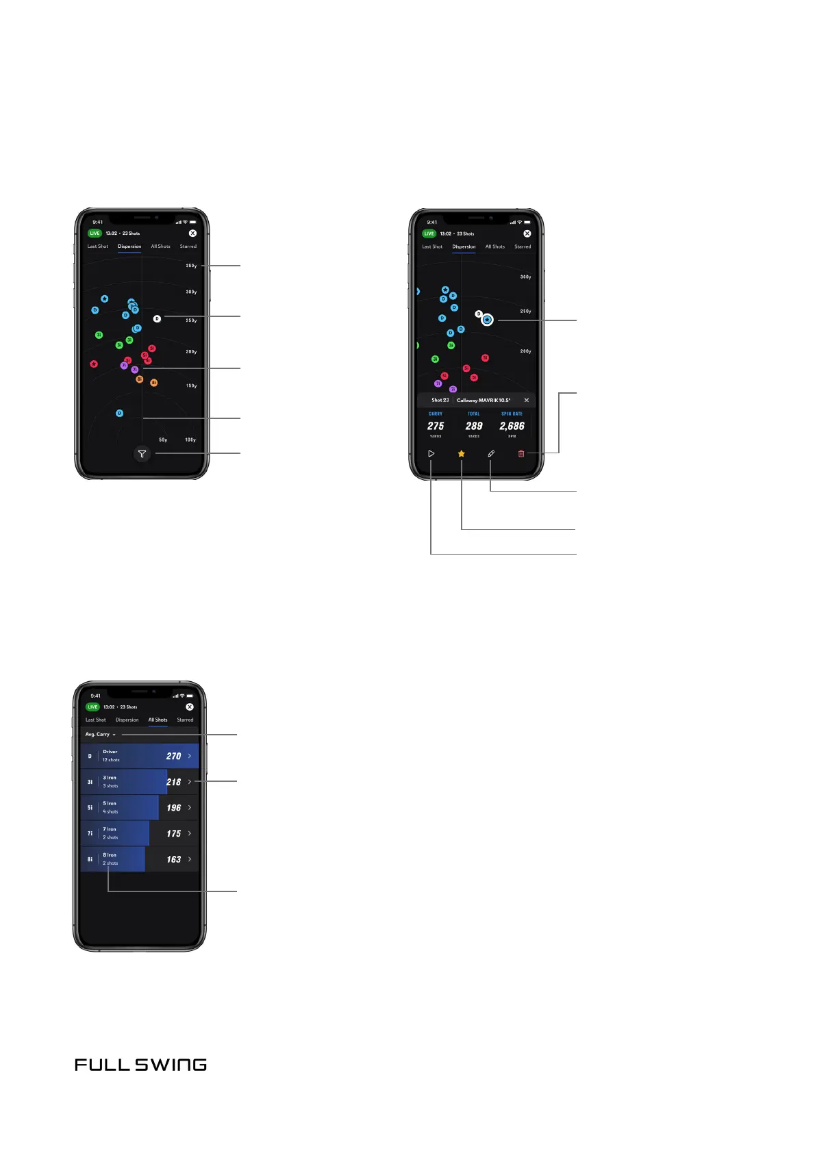 Use the All Shots tab to view all of the clubs used during the session and individual